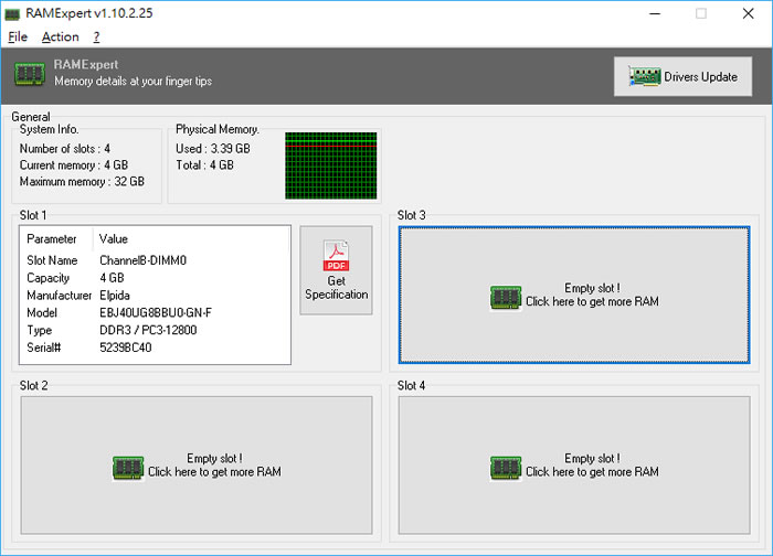 首頁電腦軟體系統應用 RAMExpert 記憶體規格檢測軟體 電腦記憶體的多寡,會直接影響電腦的效能,越大的記憶體,理論上電腦執行的效率就會越好,想要知道自己電腦上記憶體的規格,像是目前已安裝記憶體容量、插槽數量、最大記憶體容量、插槽名稱、記憶體大小、廠牌、型號、類型、序號等資訊,可以來使用這套免費的 RAMExpert 應用軟體,讓你免去拆電腦,就可以知道記憶體相關資訊,還可以將資訊匯出為純文字或 CSV 檔。 🔔 不錯過任何精彩! 立即訂閱我們的 LINE 官方帳號 每次發佈新文章時,您將會第一時間收到本站文章連結通知,輕鬆掌握最新資訊! 使用 LINE 追蹤文章更新 §相關文章,還可以參閱:CatLock:可鎖定鍵盤的 Windows 應用程式,防止寵物意外觸碰Zen Ad blocker 瀏覽器與應用程式均適用的廣告攔截器,免費且開放原始碼TimVer 一站式顯示 Windows 版本及電腦硬體相關訊息的工具「微軟電腦管家」內含開機啟動項目管理、儲存空間最佳化等免費工具 全方位提升電腦效能Windows Startup Timer 測量 Windows 從開機到完全啟動所需時間 如何使用 RAMExpert ? 1.完成安裝,開啟 RAMExpert 後,便會顯示電腦目前記憶體的相關資訊。 2.可以透過 Action 功能表將檢測的資訊匯出成文字檔或 CSV 檔案。 RAMExpert版本:1.20.0.45語言:英文性質:免費適用:Windows官方網站:https://www.kcsoftwares.com/index.php?ramexpert下載:按我下載