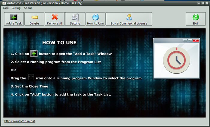 首頁電腦軟體生產力工具 AutoClose 在自訂的時間關閉指定的程序並讓電腦進入關機、重啟或休眠 工作排程器是 Windows 內建的功能,該功能可以讓電腦在指定的時間做出指定的回應,無奈,該功能並不親民,使用起來稍嫌複雜,AutoClose 這套免費又免安裝的軟體,主要功能是讓用戶可以指定某一程序在運行多久時間或所指定的時間進行關閉,並隨後讓 Windows 系統做出相關的像是休眠、關機、登出、關閉螢幕或是重新開機等的相關動作,讓執行電腦的工作排程也可以很簡單又視覺化,節省電腦資源。 🔔 不錯過任何精彩! 立即訂閱我們的 LINE 官方帳號 每次發佈新文章時,您將會第一時間收到本站文章連結通知,輕鬆掌握最新資訊! 使用 LINE 追蹤文章更新 §相關文章,還可以參閱:AingDesk:一鍵安裝 Ollama AI 模型管理器,讓 LLaMA、DeepSeek 在本機電腦上運行Arc 瀏覽器正式登陸 Windows 11,開啟全新瀏覽體驗!Norton Secure Browser 使用 Chromium 核心的瀏覽器,有廣告封鎖和隱私保護功能BingGPT 桌面應用程式,讓你不用 Edge 也能用 Bing 聊天機器人SlippyClerk 數字、英文字母有序字串產生器 可自訂前後綴字詞 如何使用 AutoClose ? 1.解壓縮所下載的檔案,執行「AutoClose.exe」便可開啟。 2.滑鼠左鍵按[ Add a Task ]來增加任務,AutoClose 會自動將目前正在執行的程序自動列出,利用滑鼠在列出的程序中指定要設定的項目,便可在下方設定要關閉的時間,可以是時間間隔也可以是指定日期時間,在 After the Task Finished 還可以指定該項程序執行後,Windows 系統要做出的相關反應。 3.回到主畫面,便可看到剛剛所增加的任務,AutoClose 是允許多項任務同時執行。 AutoClose版本:3..4.0.1語言:英文性質:個人與家庭使用免費適用:Windows官方網站:https://autoclose.net/下載: 免安裝版按我下載 安裝版按我下載