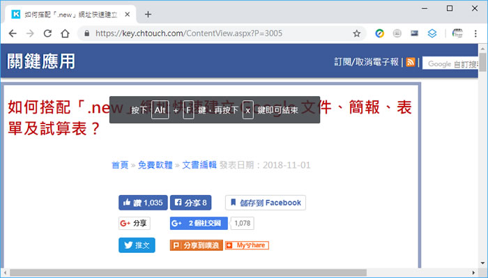 首頁操作技巧瀏覽器 使用「 Ctrl + Shift + Q 」快速鍵來關閉所有已開啟的 Chrome 瀏覽器 要關閉 Chrome 瀏覽器,很多人應該就是習慣滑鼠往右上角滑動到 X,然後按下,就全部關閉了,那如果不動滑鼠呢? Chrome 瀏覽器現在提供 「 Ctrl + Shift + Q 」快速鍵,協助用戶不使用滑鼠也能快速關閉 Chrome 瀏覽器的組合功能鍵。 🔔 不錯過任何精彩! 立即訂閱我們的 LINE 官方帳號 每次發佈新文章時,您將會第一時間收到本站文章連結通知,輕鬆掌握最新資訊! 使用 LINE 追蹤文章更新 §相關文章,還可以參閱:如何在 Chrome 中顯示 / 隱藏 AI 模式按鈕?flags 設定教學Google AI 模式正式支援繁體中文:一次搞懂功能、應用與影響Edge 不用開側邊欄!網址列直接輸入提示詞就能 AI 生圖與搜圖Edge、Chrome 瀏覽器複製已開分頁到新分頁,這招你一定要學起來Edge Android 版新增底部網址列功能,來看怎麼設定 如何使用 使用「 Ctrl + Shift + Q 」快速鍵來關閉 Chrome 瀏覽器? 1.按「 Ctrl + Shift + Q 」快速鍵後,會出現如下圖的浮動字樣。 2.接下來按照指示按下 Alt + F 鍵,在按下 X 鍵即可結束(這邊要注意鍵盤現在所處的輸入模式,如果是中文的輸入模式,不會有作用)。