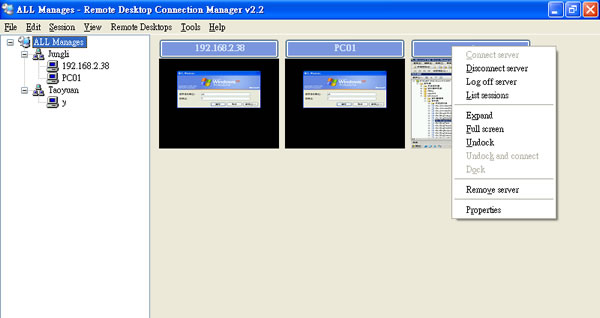在使用 Windows 內建的「遠端桌面管理」功能時,對於所建立的每個遠端連線都是單獨以RDP檔案的方式存儲,到了Windows 7時,則將連線的RDP檔案,使用捷徑的方式列表放入開始功能表內,方便快速連線。但若是要管理較多的遠端連線時,則此種的零散管理有點麻煩。Remote Desktop Connection Manage 是由微軟所開發的遠端桌面連線群組管理工具,透過該工具,可以將每個遠端連線以群組的方式進行歸類,同時開啟數個遠端連線,且該工具可將所有的設定以RDG檔案的方式,快速的移轉到裝有 Remote Desktop Connection Manage 的電腦上,可免除重複建立的麻煩。
