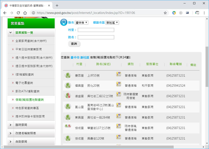 首頁線上工具生活資訊 中華郵政信筒(箱)設置地點查詢 電子郵件的方便,造成傳統郵件量的減少,相對的可投信件的信筒(箱)也變少,但有時需要用到時,就一定要拿到中華郵政的營業據點去處理嗎?其實也不用,如果是簡單的退信、平信要處理,可以到中華郵政網站去查詢住家附近有中華郵政設置的信筒(箱),免去郵局排隊,方便又省事。 🔔 不錯過任何精彩! 立即訂閱我們的 LINE 官方帳號 每次發佈新文章時,您將會第一時間收到本站文章連結通知,輕鬆掌握最新資訊! 使用 LINE 追蹤文章更新 §相關文章,還可以參閱:Apple Music 台灣新用戶優惠:6個月免費暢聽,領取方式與限制一次看!2026春節追劇清單!Netflix 2月必看攻略:燒腦推理、火爆動作片,陪你從初一爽追到開工!459 萬人搶 60 萬份!運動幣中獎號碼公布,快查你的身分證尾數都馬一起GO!LINE GO新年優惠最高拿$800優惠券,還有一個月乘車金等你抽過年搭高鐵自由座要排多久?看LINE就知道 台灣高鐵×LINE TODAY推出春節限定燈號預估服務 中華郵政信筒(箱)設置地點查詢 1.使用瀏覽器進入 信筒(箱)設置地點查詢 網頁,點選輸入所要查找的位置,便可查詢。 2.針對結果,須注意[ 類別 ]處所載明該郵筒可收的信件種類,確切位置還可以有地圖輔助。 3.較有特色的郵筒要打卡,也可以到 特色郵筒查詢專區來查詢。 中華郵政信筒(箱)設置地點網站網址:https://www.post.gov.tw/post/internet/I_location/index.jsp?ID=190106