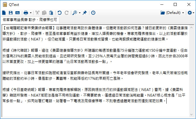 首頁電腦軟體文書編輯 QText 免費記事本軟體(免安裝) 如果覺得 Windows 內建的記事本功能太陽春,卻又用不到像 Word 般的複雜文書編輯軟體,這時候,可以考慮 QText 這套免費的記事本軟體,有 Windows 內建記事本的幾本功能,又有比前項軟體更進階的功能,例如支援多頁籤及多資料夾,且每個頁籤就是獨立的純文字檔(*.txt),如果有設定多個資料夾,也會依照資料夾的名稱產生實體資料夾,並且有自動儲存功能(預設每 2.5秒就會自動儲存,可更改)、文字搜尋、程式置頂等功能。 🔔 不錯過任何精彩! 立即訂閱我們的 LINE 官方帳號 每次發佈新文章時,您將會第一時間收到本站文章連結通知,輕鬆掌握最新資訊! 使用 LINE 追蹤文章更新 §相關文章,還可以參閱:PDF Arranger 可調整順序、刪除、旋轉...的多功能 PDF 工具程式Text Replacer 文字替換免費工具如何在 PDF 文件裡添加額外的文字、圖片、圖形或繪圖?Notepad++ 免費多功能記事本軟體doPDF 可在任何程式中藉由[ 列印 ]功能來建立 PDF 檔案 如何使用 QText ? 1.解壓縮所下載的檔案,執行「Qtext.exe」便可開啟,其中 data 資料夾是用來存放用 Qtext 所編輯的文件。 2.開啟後,按左上角藍色文件圖示,便可開啟一份新的編輯文件,而該文件會存放在 data 資料夾內 。 3.右上角的齒輪圖示 > Options,可開啟設定視窗,可以設定字型大小、自動儲存時間間隔等 QText版本:4.53語言:英文性質:免費適用:Windows官方網站:https://www.medo64.com/qtext/下載: 免安裝版 按我下載 安裝版 按我下載