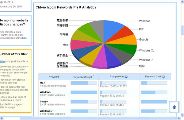 首頁線上工具生產力工具 SmartViper 線上即時統計分析網站的關鍵字及相關數據 SmartViper 是一個免費的網站服務,只要輸入想要查詢的網站,便免費提供該網站的相關統計分析數據,其中包含關鍵字、相同類型的網站、網站的熱門網頁、反向連結及已建立索引的網頁...等等,其中較特別的是還分析出一份網頁的熱區標示圖,協助網站擁有者了解網頁最熱門的區塊,運用該數據調整網站結構。 🔔 不錯過任何精彩! 立即訂閱我們的 LINE 官方帳號 每次發佈新文章時,您將會第一時間收到本站文章連結通知,輕鬆掌握最新資訊! 使用 LINE 追蹤文章更新 §相關文章,還可以參閱:用 AI 做出的電影,YouTube 就看得到!一起來欣賞這部贏得百萬美元的突尼西亞短片《Lily》Apple Creator Studio 來了:Final Cut Pro、Logic Pro 等九款 App 月付 390 元,學生優惠僅 90 元ChatGPT 智慧購物功能登台!台灣用戶也能用 AI 做商品研究與比價2026學生專屬福利:從AI工具到雲端服務,10+款專業軟體免費/折扣全攻略ChatGPT 語氣微調功能上線!教你調整暖度、熱情度與表情符號 如何使用 SmartViper? 1.進入 SmartViper 的網站後,在Check Website處輸入要查詢的網站後,點擊[GO],若想得到更好的服務,建議可以註冊成為會員。 2.稍後,便會列出網站的統計分析資料。 3.關鍵字的相關統計分析。 4.熱區分析圖。 SmartViper網站網址:http://www.markosweb.com/addsite/