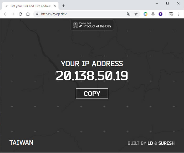 首頁線上工具網路應用 透過 Eyep 免費網路服務,查詢電腦的 IP 位址 電腦要連上網際網路就必須跟 ISP 取得一個合法的 IP 位址,而該位址會跟隨你直到中止網際網路連線為止,因此,許多網路的觸法行為,都是以 IP 位址為主要依據,可以說,凡走過必留下線索。想要知道自己電腦對外實際的 IP 位址,可以使用 Eyep 這個線上的免費網路服務來查詢,即便是透過 IP 分享器的 NAT( 網路位址轉換 ) 功能上網,只要進入該網站,就會顯示連上設備的對外 IP 位址。 🔔 不錯過任何精彩! 立即訂閱我們的 LINE 官方帳號 每次發佈新文章時,您將會第一時間收到本站文章連結通知,輕鬆掌握最新資訊! 使用 LINE 追蹤文章更新 §相關文章,還可以參閱:VPNLY 完全免費 VPN 工具,四國 20+ 伺服器免註冊無限流量Flying TTFB:免費網站測速工具!22個全球節點幫你找出網站慢在哪Google URL Shortener (goo.gl) 正式告別, 10個優質短網址替代方案推薦Zero Width Shortener (ZWS):隱形短網址的免費縮網址線上工具LibreSpeed SpeedtestCustom:免費網路速度測試工具,提供遠傳、台灣大哥大、中華、亞太等測試主機 如何使用 Eyep 來查詢自己電腦的 IP 位址? 1.使用瀏覽器進入 Eyep 網站,便會顯示連上該網站的所使用的 IP 位址。 2.也可以使用 Windows 內建的 ipconfig 指令來取得更多的連線資訊。 Eyep網站網址:http://eyep.dev/