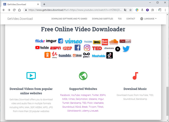 首頁線上工具上傳下載 GetVideo.Download 線上免費網路影音下載服務 Facebook、YouTube、Instagram、Twitter、ESPN...等網路影音網站相當多且內容包羅萬象,但誰都不能保證自己愛看的影片,可以存活多久,也許今天可以看,但到了明天就已經被移除了,因此,便有很多可以下載這些網路影音的網站、應用程式相繼的出現,GetVideo.Download 這個網站可以免費下載 Facebook、YouTube、Instagram、Twitter、ESPN、IMDb、Vimeo、Dailymotion、Izlesene、Imgur、Tumblr、Bandcamp、TED、Flickr、Mashable、Soundcloud、9GAG、Break、TV.com、Tiktok、Odnoklassniki、Udemy、LiveLeak 等影音網站內的影音,只要貼上網址,免去跳來跳去的廣告誘導點擊網頁,就可以選擇要下載的影片解析度及影片格式,相當乾脆。 🔔 不錯過任何精彩! 立即訂閱我們的 LINE 官方帳號 每次發佈新文章時,您將會第一時間收到本站文章連結通知,輕鬆掌握最新資訊! 使用 LINE 追蹤文章更新 §相關文章,還可以參閱:M3U8 Player:本地瀏覽器處理,播放、下載、轉 MP4 一站免費完成getM3U8 免費線上工具:輕鬆下載 M3U8 串流影片並轉檔 MP4SnapWC 免費影片下載器:一鍵搞定 YT、IG、FB、抖音等 10,000+ 平台影片、音訊、圖片需要分享圖片連結?試試 PiXhost 免費圖床服務P2PFileShare 線上 P2P 傳檔免費工具,免安裝無檔案大小限制直接瀏覽器傳輸 如何使用 GetVideo.Download 下載 YouTube 影片? 1.支援的影音網站如下圖。 2.使用瀏覽器進入 GetVideo.Download 網站,以 YouTube 網站為例,貼上影片網址後,按[ Enter ]。 3.選擇要下載的影片解析度及格式,就可以下載。 GetVideo.Download網站網址:https://www.getvideo.download/