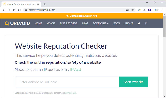 首頁線上工具資訊安全 利用 URLVoid 檢查網站的安全性 網路雖然便利,但隱藏的陷阱卻也不少,像是釣魚網站、跨網站腳本攻擊、首頁綁架...等等的安全性問題,實在防不勝防,如果要進入一個有安全疑慮的網站,建議你可以使用 URLVoid 這個網站提供的安全性掃描服務,該服務除了會列出網站網域的註冊資料之外,還會同時到包括 GoogleSafeBrowsing、MalwareDomainList、 DrWeb...等在內的 30多個網站檢查該網站是否有被列入黑名單,讓上網的安全性更加有保障。 🔔 不錯過任何精彩! 立即訂閱我們的 LINE 官方帳號 每次發佈新文章時,您將會第一時間收到本站文章連結通知,輕鬆掌握最新資訊! 使用 LINE 追蹤文章更新 §相關文章,還可以參閱:終結網路霸凌!Google 搜尋新工具幫你永久移除私密影像注意!Let's Encrypt 憑證期限從 90 天減半至 45 天,因應方法看這裡朱雀大模型檢測:騰訊推出的 AI 內容鑑別工具,精準識別 AI 生成文章與圖片如何透過「Google One」檢查 Gmail 是否因資料侵害事件外洩到暗網上?Batch PDF Encryptor 替 PDF 檔案加入擁有者與開啟密碼保全措施 免費可批量 如何使用 URLVoid ? 1.使用瀏覽器進入 URLVoid 網站,輸入要檢查的網站網址後,按[ Scan Website ]就會開始掃描。 2.稍後,便可以看到報告。 3.如果被某網站列為黑名單,也可查看原因,再行判斷。 URLVoid網站網址:https://www.urlvoid.com/