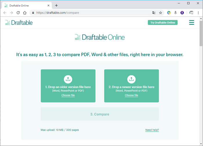 首頁線上工具檔案管理 利用免費的 Draftable 線上工具,找出 2份 PDF 內容的不同之處 如果要用人工比較出 PDF 文件前後版本的內容差異,除非落差很大或內容本就精簡,不然,即便是比對完成,也難以保證無缺失,相對於人工,透過應用程式來比對,則可以大幅降低人為的疏失,Draftable Online 是一個 web 應用程式,只需要將比對的 PDF 文件使用滑鼠拖拉到指定的位置上傳,便可快速找出這兩份文件中的不同之處,方便後續文書編輯及版本控制等應用。 🔔 不錯過任何精彩! 立即訂閱我們的 LINE 官方帳號 每次發佈新文章時,您將會第一時間收到本站文章連結通知,輕鬆掌握最新資訊! 使用 LINE 追蹤文章更新 §相關文章,還可以參閱:VERT:開源本地端檔案格式轉換器,隱私優先的免費瀏覽器轉檔工具PageSplitty 線上 PDF 分割轉 JPG、PNG、WebP 圖工具,支援 5GB 大小的大檔案PixDuplicate:免上傳快速找出並刪除重複照片的免費線上工具Adapter:全方位影片、音檔及圖片格式轉換免費軟體,支援影片轉音檔與圖片,音檔及圖片格式互轉TextCompare 線上比較 Excel、PDF 及圖片,快速找出檔案不同之處 如何使用 Draftable Online 找出 2份 PDF 內容的不同之處? 1.使用瀏覽器進入 Draftable Online 網站,分別將要比較的 PDF 文件,使用滑鼠拖拉到相關位置。 2.完成上傳後,按[ Compare ]來進行比較。 Draftable Online網站網址:https://draftable.com/compare