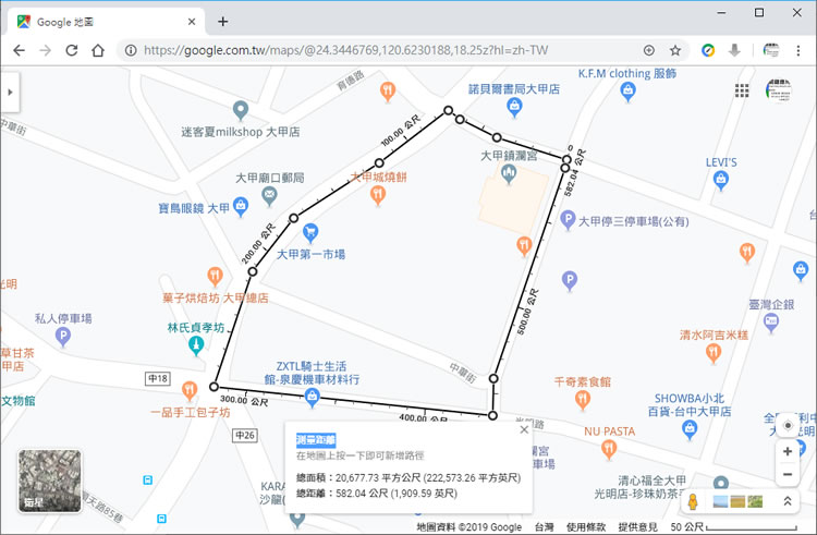 首頁操作技巧Google 如何在「Google 地圖」上測量距離與計算面積? 要測量所規劃出的跑步路線距離或是某範圍地區的面積,通常就是透過車輛的公里數來計算,說實在話有點麻煩,因為人車都必須到現場,要不就是拿出地圖跟尺根據比例尺來計算,而現在只需利用「Google 地圖」上的測量工具,透過滑鼠的點擊便能輕易計算出距離與面積,相當方便。 🔔 不錯過任何精彩! 立即訂閱我們的 LINE 官方帳號 每次發佈新文章時,您將會第一時間收到本站文章連結通知,輕鬆掌握最新資訊! 使用 LINE 追蹤文章更新 §相關文章,還可以參閱:別再只會用兩指縮放 Google 地圖了!這些隱藏手勢讓你效率翻倍照著做就會!Google 官方釋出 NotebookLM 簡報製作的 8 種範例教學機車族專屬!Google Maps 推出 5 款超萌機車圖示 × 8 種顏色,設定步驟看這篇Google Skills:3000+ 門課程助你打造 AI 時代競爭力Google Vids 全解析:一文看懂功能、免費版限制及完整操作步驟 如何使用「Google 地圖」進行距離測量與面積計算? 1.使用瀏覽器進入「Google 地圖」後,在要計算距離的起點使用滑鼠右鍵叫出快速功能表,然後點擊[ 距離測量 ]標出起點。 2.利用滑鼠左鍵點擊行進路徑,如果遇到轉彎處可以多點幾個點來轉彎,也可以拖曳標記點來調整位置,。 3.如果是要計算面積,可以將範圍標出,在下方浮動的顯示塊就會標示出距離與面積。 4.也可以用衛星圖來標示。