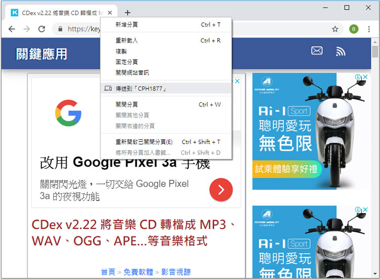 首頁操作技巧瀏覽器 Chrome 瀏覽器如何與手機互相傳送正在瀏覽的網頁網址? 利用電腦瀏覽器瀏覽網頁時,想要傳送網址到手機或是手機要傳送網址到電腦瀏覽器時,不用在手動去輸入網址了,如果是使用 Google Chrome 瀏覽器,只要手機與電腦登入同一個 Google 帳號,然後開啟同步功能,就可以很輕易的在兩個裝置間相互傳送網址,免去在瀏覽器網址列手動敲出一長串的網址還面臨敲錯重敲的噩夢。 🔔 不錯過任何精彩! 立即訂閱我們的 LINE 官方帳號 每次發佈新文章時,您將會第一時間收到本站文章連結通知,輕鬆掌握最新資訊! 使用 LINE 追蹤文章更新 §相關文章,還可以參閱:Chrome 分割畫面免外掛!Google 官方教你一鍵並排雙視窗,工作效率大提升如何在 Chrome 中顯示 / 隱藏 AI 模式按鈕?flags 設定教學Google AI 模式正式支援繁體中文:一次搞懂功能、應用與影響Edge 不用開側邊欄!網址列直接輸入提示詞就能 AI 生圖與搜圖Edge、Chrome 瀏覽器複製已開分頁到新分頁,這招你一定要學起來 Chrome 瀏覽器如何與手機互相傳送正在瀏覽的網頁? 1.電腦開啟 Google Chrome 瀏覽器,登入與手機相同的 Google 帳號並開啟同步功能。 2.使用滑鼠右鍵點擊要傳送至手機的網頁,便可叫出快速功能表,再點擊手機裝置的型號名稱便可傳送,同時,Windows 也會出現提示訊息。 3.手機在接收到推播的訊息後,同樣會出現提示訊息,點擊該訊息,便可以立刻瀏覽該網頁。 4.手機要傳送網址到電腦的 Chrome 瀏覽器也相當簡單,點擊右上角的直向3點圖示按鈕,再按[ 分享 ]後,選擇使用[ 傳送至你的裝置 ]來傳送。 5.電腦收到推播的訊息後,同樣會在 Windows 作業系統的右下角處出現提示訊息,點擊該訊息就可以瀏覽該網頁。