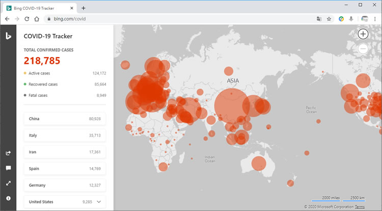 首頁線上工具生活資訊 Bing COVID-19 Tracker 微軟用地圖助你掌握各國新冠肺炎疫情 每天從電視、網路、報紙看新聞時,會因為時間差或重複的原因,往往看到世界各國的確診、治癒出院或死亡病例數都會不一樣,這對掌握疫情資訊非常不利,想要快速了解世界各國新冠肺炎疫情資訊,從最早的 美國約翰·霍普金斯大學 將疫情資訊以地圖來呈現開始,陸陸續續都有相似的網站出現,像是 [ 聯合報 ] 圖解台灣新冠肺炎個案身分和關係、衛生福利部疾病管制署公布新冠肺炎病例地理分布圖 等,現在 Microsoft 也結合旗下的 Bing 搜尋網站,推出 COVID-19 Tracker,除了讓用戶可以隨時查看各國確診人數、治癒人數與死亡人數之外,更將該地相關新聞資訊一併呈現。 🔔 不錯過任何精彩! 立即訂閱我們的 LINE 官方帳號 每次發佈新文章時,您將會第一時間收到本站文章連結通知,輕鬆掌握最新資訊! 使用 LINE 追蹤文章更新 §相關文章,還可以參閱:Apple Music 台灣新用戶優惠:6個月免費暢聽,領取方式與限制一次看!2026春節追劇清單!Netflix 2月必看攻略:燒腦推理、火爆動作片,陪你從初一爽追到開工!459 萬人搶 60 萬份!運動幣中獎號碼公布,快查你的身分證尾數都馬一起GO!LINE GO新年優惠最高拿$800優惠券,還有一個月乘車金等你抽過年搭高鐵自由座要排多久?看LINE就知道 台灣高鐵×LINE TODAY推出春節限定燈號預估服務 如何使用 Bing COVID-19 Tracker? 1.使用瀏覽器進入 Bing COVID-19 Tracker 網站,便可看到以地圖呈現各國疫情狀況,右邊欄則是統計資訊。 2.美國部分則有各州呈現。 3.點擊各國或地區名稱,則會加載該地新聞資訊。 Bing COVID-19 Tracker網站網址:https://www.bing.com/covid