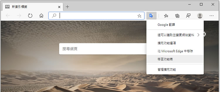 首頁瀏覽器擴充功能網頁瀏覽 如何隱藏 Edge、Chrome 瀏覽器所安裝的擴充功能圖示按鈕? Google 提供相當多且好用的 Chrome 瀏覽器擴充功能,就連 Microsoft Edge 都可以使用,使得原本需要另外安裝應用程式的才能取得的應用,在瀏覽器內就可以得到相對應的解決方案,但安裝瀏覽器擴充功能後,會在瀏覽器的右上角處,出現該功能的圖示按鈕,佔據瀏覽器網址列的寬度,這對於安裝較多且有些偶而才會需要用到這些擴充功能的用戶而言,除了瀏覽器版面顯得較凌亂,也難以分辨,如何可以隱藏某些或全部所安裝的擴充功能圖示按鈕,使得瀏覽器版面顯得更簡潔些呢?其實,只要在這些擴充功能的圖示按鈕上使用滑鼠右鍵點擊,便可隱藏或移動,讓擴充功能的圖示按鈕在瀏覽器某處統一管理。 🔔 不錯過任何精彩! 立即訂閱我們的 LINE 官方帳號 每次發佈新文章時,您將會第一時間收到本站文章連結通知,輕鬆掌握最新資訊! 使用 LINE 追蹤文章更新 §相關文章,還可以參閱:Font Finder & Style Detector 網頁字型搜尋與樣式偵測器,免費瀏覽器擴充功能MarkX 將網頁所選文字內容儲存成書籤,提供關鍵字搜尋功能U-Eyes 移動設備瀏覽網站模擬器,可擷取網頁成圖片與錄製螢幕Live CSS Tester 在任何網頁注入 CSS 進行即時測試Quick History 以網站角度快速檢視該網站的瀏覽紀錄(瀏覽器擴充功能) 如何隱藏 Edge、Chrome 瀏覽器所安裝的擴充功能圖示按鈕? 1.Edge 與 Chrome 兩個瀏覽器要隱藏所安裝的擴充功能圖示按鈕,其實方法都是一樣的,使用滑鼠右鍵按擴充功能圖示按鈕後,Edge 將其稱為[ 移至功能表 ],而 Chrome 則稱之為[ 在 Chrome 選單中隱藏 ]。 2.不論是移至或隱藏,都是將擴充功能圖示按鈕,統一放到設定選單上的最上層。 3.要想再放回去原地方,同樣使用滑鼠右鍵點擊擴充功能圖示按鈕後,Edge 再點擊[ 移至工具列 ],Chrome