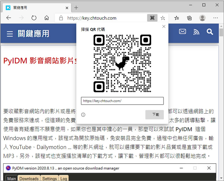 首頁操作技巧瀏覽器 如何透過 Edge、Chrome 瀏覽器產生網址的 QRCode? 不論是宣傳網址或是朋友、裝置之間要互通網址,將網址製作成 QRCode 圖形,使用者只要掃描就可進入該網址,大概是最方便的方式,而網路也有很多此類的 QRCode 免費產生器,只要輸入相關資訊就能產生相對應的 QRCode 圖形,而現在你如果是使用 Microsoft Edge 或是 Google Chrome 瀏覽器瀏覽的網址,立刻就可以使用其內建的功能,產生出一個中間帶有恐龍的 QRCode 圖標,方便分享。 🔔 不錯過任何精彩! 立即訂閱我們的 LINE 官方帳號 每次發佈新文章時,您將會第一時間收到本站文章連結通知,輕鬆掌握最新資訊! 使用 LINE 追蹤文章更新 §相關文章,還可以參閱:如何在 Chrome 中顯示 / 隱藏 AI 模式按鈕?flags 設定教學Google AI 模式正式支援繁體中文:一次搞懂功能、應用與影響Edge 不用開側邊欄!網址列直接輸入提示詞就能 AI 生圖與搜圖Edge、Chrome 瀏覽器複製已開分頁到新分頁,這招你一定要學起來Edge Android 版新增底部網址列功能,來看怎麼設定 如何透過 Edge、Chrome 瀏覽器產生網址的 QRCode? 1.要使用 Edge、Chrome 瀏覽器內建的網址 QRCode 產生器,需先在瀏覽器內開啟該項功能,Chrome 的網址列輸入[ chrome://flags ],Edge 的網址列則是輸入[ edge://flags ]。 2.兩者在搜尋框中,都是使用 Enable sharing page via QR Code 關鍵字來搜尋,並將預設值改為[ Enabled ],並重新開啟瀏覽器。 3.重新開啟的瀏覽器,在網頁的內容處,使用滑鼠右鍵點擊所叫出的功能表,將會看到[ 為這個頁面建立 QR 圖碼 ]功能,以下是 Chrome 操作。 4.Edge 則是相同的操作步驟。