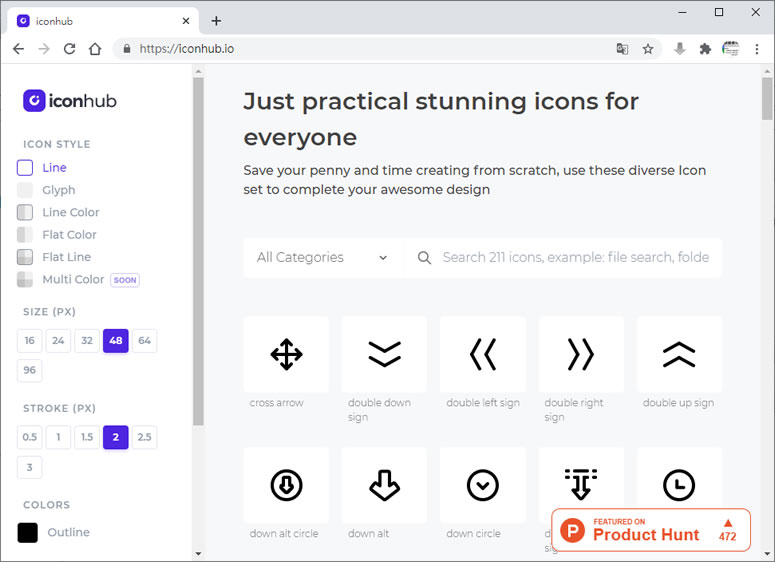 首頁免費素材圖像圖示 iconhub 可商用且可自定顏色的 SVG 圖示免費下載使用 圖示的應用代替了文字的描述,讓原本需要用多字描述的場所、指示或告知變得更加簡潔且更有渲染力,網路上有很多可免費下載的圖標可供應用,而 iconhub 這個網站提供的是 SVG 圖檔,且讓使用者在線上就可以選擇圖標的尺寸大小、顏色、外框粗細及外框顏色,免去下載後還要後製的麻煩,如果要應用到網頁中,也提供 HTML 連結,直接就能夠網站中使用。 🔔 不錯過任何精彩! 立即訂閱我們的 LINE 官方帳號 每次發佈新文章時,您將會第一時間收到本站文章連結通知,輕鬆掌握最新資訊! 使用 LINE 追蹤文章更新 §相關文章,還可以參閱:精心打造的等距美學:Isocons 免費圖示資源庫,CC BY 4.0 授權Map-It:日本地圖素材的免費寶庫,從全國到市町村一網打盡PICaboo! 日系可愛免費向量圖素材庫:設計師必收的創作寶庫GAHAG:日本免費圖庫新選擇,結合アハ體驗互動遊戲的創意素材平台illust STAMPO:日式風格的免費插圖素材網站 如何使用 iconhub ? 1.使用瀏覽器進入 iconhub 網站,我們可以透過左上角 ICONS STYLE 來選擇所要的圖標樣式。 2.透過左側的調整列,我們可以開始調整邊框顏色、尺寸大小、邊框粗細。 3.滑鼠移動到要下載的 ICON 上便會出現使用方法。 4.使用 Select 就如同購物車般可將挑選的 ICON 放入後,再點擊左側欄內的[ DOWNLOAD ]一起下載;而使用 Copy SVG 怎可將 SVG 的 HTML 應用語法直接複製,方便你調要應用的位置。 iconhub網站網址:https://iconhub.io/