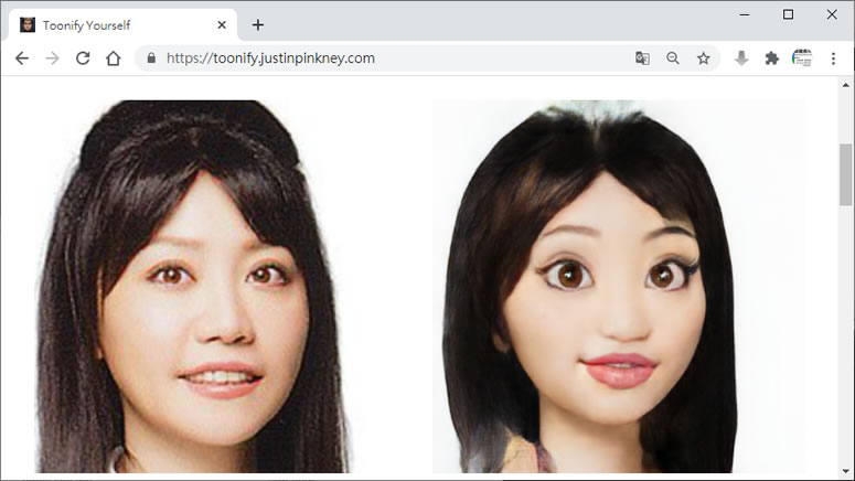 首頁線上工具影像繪圖 Toonify Yourself 利用 AI 將大頭照轉換成具有迪士尼風格的頭像 最近流行虛擬人物與替身,不論是 Facebook 或是 line 都推出製作虛擬人物來代表自己的功能,而 Toonify Yourself 這個免費的 Web 應用服務,則是將上傳的大頭照利用人工智慧直接打造成具有與原大頭照的相似度且又具有迪士尼動畫風格的虛擬頭像,用來代表自己更具價值。 🔔 不錯過任何精彩! 立即訂閱我們的 LINE 官方帳號 每次發佈新文章時,您將會第一時間收到本站文章連結通知,輕鬆掌握最新資訊! 使用 LINE 追蹤文章更新 §相關文章,還可以參閱:Nano Banana 2 怎麼用?Google 親自示範 5 個 Prompt 實用範例跟著做就會!教你用 ChatGPT 製作具職業形象的漫畫風頭像Put!所見即所得的 AI 提示詞圖庫:讓你看著範例圖,複製就能做出同級作品Google 親自示範:Nano Banana AI 圖像編輯工具的 13 個熱門玩法照片角度不滿意?AI 幫你調整!3D Camera Control 讓舊照片任意變換視角 如何使用 Toonify Yourself 打造虛擬頭像? 1.使用瀏覽器進入 Toonify Yourself 網站,可先來看看網站給出的樣本。 2.接下來點擊[ Browse ]來選擇自己的大頭照,最後按[ Toonify! ]來上傳製作。 3.稍後,便可得到對照圖,滑鼠右鍵點擊就可以下載。 Toonify Yourself網站網址:https://toonify.justinpinkney.com/