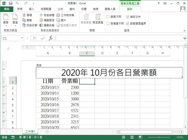 首頁操作技巧Excel [ Excel ]如何加入標題欄? 多數人使用 Excel 做電子表格或報表時,會將第一列的儲存格合併後當作是標題列,其好處就是時時可見,但計算要匡列儲存格時,就必須從 2開始,那如果要從 1開始又要有標題出現呢?其實我們可以將頁首拿來當作是標題列,其缺點就是必須切換或列印時才可見到標題,至於如何使用頁首當作標題列,只要透過插入頁首/頁尾的功能即可辦到。 🔔 不錯過任何精彩! 立即訂閱我們的 LINE 官方帳號 每次發佈新文章時,您將會第一時間收到本站文章連結通知,輕鬆掌握最新資訊! 使用 LINE 追蹤文章更新 §相關文章,還可以參閱:[ Excel、 Google 試算表 ] 如何找出最大值或最小值?[ Excel ]如何為「行」進行編號?[ Excel ]如何使用「交叉分析篩選器」快速篩選表格內的數據?[ Excel ]如何使用圖示集來凸顯儲存格內的值?[ Excel ]如何在圖表中以人形圖像呈現數據資料? 如何加入 Excel 標題欄? 1.開啟 Excel 後,使用[ 插入 ] > [ 文字 ] > [ 頁首及頁尾]。 2.在頁首輸入標題。 3.可利用如下圖紅色框線處內的按鈕,回到標準模式。 4.當列印時就會將頁首處的標題納入。