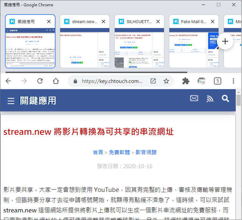 以前的一個瀏覽器只能開啟一個網站,所以要瀏覽多個網站就必須開啟多個瀏覽器,後來改進成一個瀏覽器可以利用不同的分頁來開啟不同的網站,不同的做法各有不同的優缺點,只是現在主流的瀏覽器幾乎都是以後者為主,但,該如何在一個瀏覽器多個分頁內切換到想要去的分頁,卻成了問題,尤其是同一個網站以多個分頁瀏覽不同的網頁,在分頁擠壓下並不容易判斷,藉此,Chrome 可以藉著開啟「WebUI Tab Strip」和「Touch UI Layout」這兩項實驗性功能,直接標出目前分頁總數量,而點擊數量圖示按鈕,就可以大面板預覽目前分頁內容,讓用戶可以正確的判斷所要去的分頁。