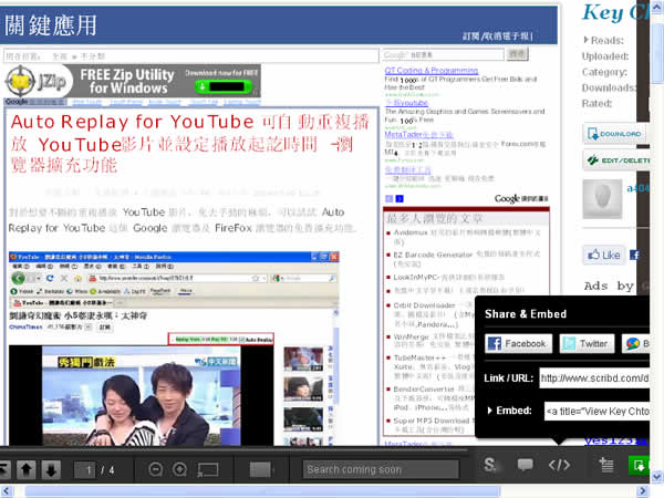 首頁線上工具生產力工具 scribd 線上將 Word、Excel、PowerPoint、PDF、TXT...等文件格式,嵌入網頁或分享 scribd 與 embedit 兩者屬於性質相近的網站,其主要功能都是將文件檔案類型的文件(Word、Excel、PowerPoint、PDF、TXT...等文件格式)轉換成 Flash,並可內嵌到任意網頁中及分享到社交網站中。scribd 的文件來源可以是本機電腦裡的檔案、Google Docs、須付費的文件或是自己使用鍵盤打入的一段文字。 🔔 不錯過任何精彩! 立即訂閱我們的 LINE 官方帳號 每次發佈新文章時,您將會第一時間收到本站文章連結通知,輕鬆掌握最新資訊! 使用 LINE 追蹤文章更新 §相關文章,還可以參閱:OpenAI 在 ChatGPT 中測試廣告|哪些帳戶受影響、廣告運作原則一次看在蝦皮當賣家,商品如何定價?手續費、免運、稅金怎麼算?蝦皮手續費計算機幫你全搞定!Google AI Plus 降到 260 元對決 ChatGPT Go!誰的功能更值得訂閱?ChatGPT Go 月付 290 元值得嗎?免費版、Plus 完整比較用 AI 做出的電影,YouTube 就看得到!一起來欣賞這部贏得百萬美元的突尼西亞短片《Lily》 如何使用scribd? 1.進入 scribd 網站後,點擊上方列的[Upload]。 2.選擇文件來源,scribd 的文件來源可以是本機電腦裡的檔案、Google Docs、須付費的文件或是自己使用鍵盤打入的一段文字。 3.使用本機電腦內的 PDF 文件,若不想公開該份文件,請勾選[Make this document private],選好文件上傳時,便會出現該網站的服務及隱私政策,點擊[是]。 4.接下來便會開始上傳並生成Flash檔案。 5.生成後,便可為該份文件進行分類、輸入關鍵字及文件描述,輸入好之後,點擊[Save]。 6.點擊該份文件名稱,便會進入文件的預覽,若想將該份文件嵌入到網頁,可複製 embed 內的該段程式碼,並將其貼到網頁中。 scribd語言:英文性質:免費官方網站:http://www.scribd.com/