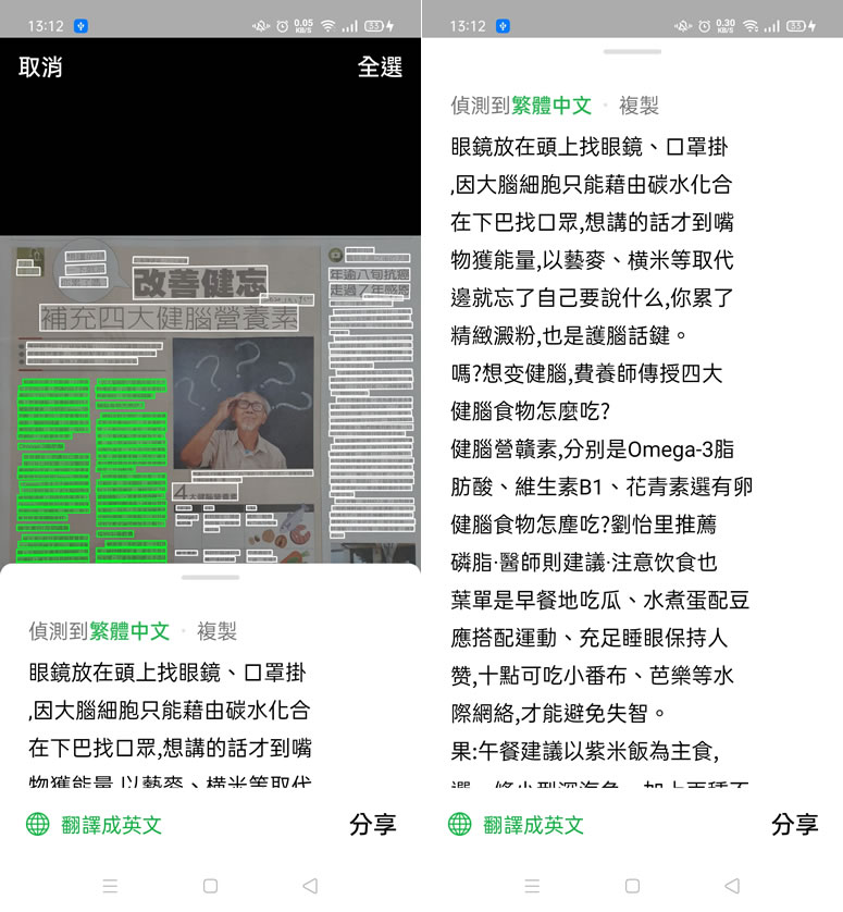 首頁線上工具社群與通訊 如何使用 Line 取出圖片內的文字並翻譯? Line APP 的功能除了有基本的通話、傳檔案、視訊外,甚至購物、付款都可以由它包辦,普及程度已成手機內必定要安裝的 APP了,但今天要介紹的是如何取出圖片內的文字,如果有需要時還可以進行翻譯的操作,常常我們會收到內容是滿滿文字的圖片,例如笑話、文章、報導等,如果覺得資訊有用,該如何將其內的文字取出做後續的應用,很多人會聯想到使用 Google 的服務,但其實也不需要這麼麻煩了,Line 本身就有這樣的功能了,即便取出的文字是外文也可以直接翻譯。 🔔 不錯過任何精彩! 立即訂閱我們的 LINE 官方帳號 每次發佈新文章時,您將會第一時間收到本站文章連結通知,輕鬆掌握最新資訊! 使用 LINE 追蹤文章更新 §相關文章,還可以參閱:馬上爆富超好用!LINE Bank × 胸毛公寓招財貼圖,農曆新年免費領取馬年行大運!精選8款新春招財LINE免費貼圖,OPEN將、罐頭豬陪你過好年「LINE 社群」也能開店!打通聊天到下單的最後一哩路存發票也能玩遊戲!LINE 發票管家改版重點一次看LINE 教你玩轉 2025聖誕節!召喚熊大特效、秒送禮物、搶免費貼圖全攻略 如何使用 Line 取出圖片內的文字及翻譯? 1.開啟要取出文字的圖片後,按右上角如下圖紅色框線處所示的圖示按鈕,接下來就會以綠色框線框出所有文字。 2.使用者可以自選所需要擷取文字的範圍,每更動一次,其下方就顯示辨識出的文字。 3.需要翻譯時,也可以自行選要擇翻譯語言,後續可以將這些文字複製或分享。