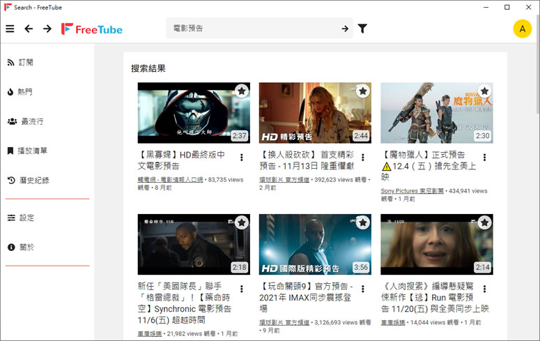 首頁電腦軟體上傳下載 FreeTube 讓 YouTube 影片可無廣告播放又可下載的免費應用軟體 在 YouTube 看影片,除了追求影片的精采度,當然還有一個就是無廣告,要讓 YouTube 播放時免去三不五時穿插進來的廣告,可以加入 YouTube Premium 付費會員得到更好的服務,包含可跨平台播放影片及在背景播放音樂等,但,如果能無廣告又能直接下載或轉檔且又免費。實在沒有理由不用。FreeTube 是套免費又免安裝且適用 Windows、Mac 及多個 Linux 發行版作業系統的 Open Source 軟體,不但可以滿足你看影片要無廣告的要求,還可以直接下載或轉檔該影片,該應用程式在介面與操作上基本與 Google YouTube 一致,如就單純影片播放來說,甚至更好,除了可無廣告播放影片外,也支援對影片的多種檔案格式下載,可以說是使用電腦觀看 YouTube 影片的最佳方法。 🔔 不錯過任何精彩! 立即訂閱我們的 LINE 官方帳號 每次發佈新文章時,您將會第一時間收到本站文章連結通知,輕鬆掌握最新資訊! 使用 LINE 追蹤文章更新 §相關文章,還可以參閱:ArrowDL 全平台下載利器:輕鬆批量下載 YouTube、BT、FB與多站串流影片YouTubePlaylistDownloader 支援播放清單與頻道的 YouTube 影片下載工具,還能轉換格式Parabolic 讓 yt-dlp 更好用的免費影音下載工具,支援上千個網站的影音下載Hasleo Windows ISO Downloader 幫你從微軟網站下載原版 Windows ISO 檔XMusicDownloader 從音樂網站搜尋並下載歌曲的免費應用程式 如何使用 FreeTube? 1.解壓縮所下載的檔案,執行「FreeTube.exe」便可開啟。 2.開啟後,可以先到[ 設定 ]處,更改介面語言。 3.針對設定功能,還可以對播放器進行一些設定 4.使用上的習慣與 Google YouTube 類似,輸入關鍵字後,便會列出相關影片,使用者可以透過篩選器來篩選,不知道看什麼影片時,左側列表還有熱門、最流行等選項可供你挑選影片。 5.要下載該影片也很簡單。 FreeTube版本:0.18.0 Beta語言:中、英文性質:免費適用:Windows | Mac | Linux官方網站:https://freetubeapp.io/下載:按我前往 FreeTube 官方網站下載