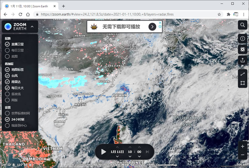 首頁線上工具網頁瀏覽 ZOOM EARTH 使用瀏覽器探索地球各地天氣、野火、雨區,還可以測量距離及面積 想要探索整個地球上即時的天氣狀況,例如哪裡有颱風、哪裡正在下雨、哪裡發生大火、日夜分隔線在哪等等,即便是有了衛星蒐集這些數據,一般民眾大概也難拿到這些數據,即便是拿到數據也也還要能夠將數據圖形化,而 ZOOM EARTH 這個網站則是將這些即時數據整合到全球地圖上,透過圖層的加載或剝離讓使用者自行探索目前地球上各地的天氣狀況、野火...等情況,並提共測量面積及距離的工具,方便使用者對其感興趣數據進行測量。 🔔 不錯過任何精彩! 立即訂閱我們的 LINE 官方帳號 每次發佈新文章時,您將會第一時間收到本站文章連結通知,輕鬆掌握最新資訊! 使用 LINE 追蹤文章更新 §相關文章,還可以參閱:Google 搜尋『67』會發生什麼事?網友實測驚呼:螢幕活了!Google 2025 台灣年度搜尋榜:地震、普發現金、Gemini,我們都在找什麼?ChatGPT Atlas 瀏覽器問世:三大 AI 功能顛覆你的上網方式Microsoft Rewards 點數全自動狂賺法,一鍵設定、天天進帳!如何將 DeepSeek 安裝成應用程式? 如何使用 ZOOM EARTH ? 1.使用瀏覽器進入 ZOOM EARTH 網站,預設就會定位在目前所在位置。 2.點擊左上角的[ ZOOM EARTH ]便可以展開圖層選擇,使用者可以自行添加或剝離圖層。 3.例如可以看台灣目前正在下雨的區域,而該區域的面積,可以透過右側的測量工具計算其面積。 4.要知道目前地球上有多少颱風形成,也可以透過右側工具列的[ 颱風 ]得知。 ZOOM EARTH網站網址:https://zoom.earth/