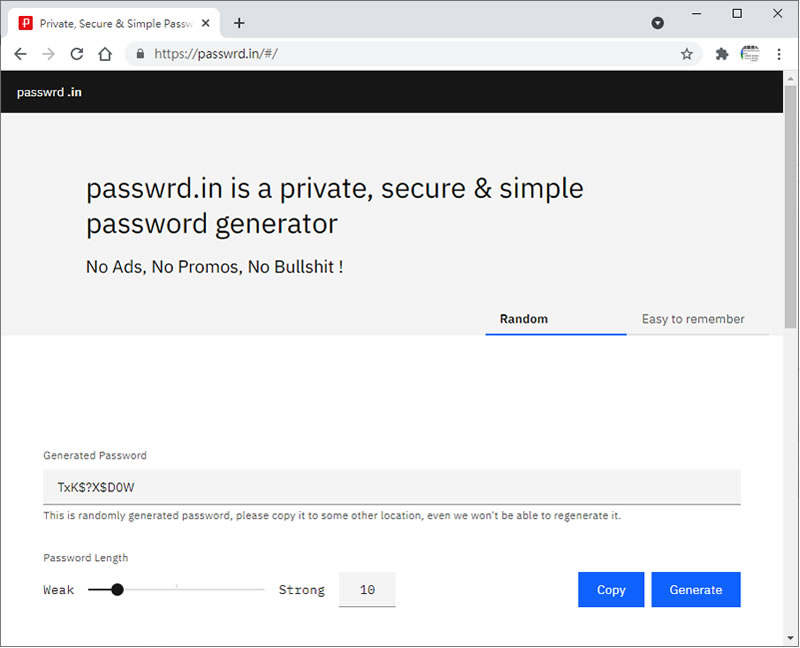 首頁線上工具資訊安全 passwrd.in 可自選長度的線上密碼產生器 不論是 Windows 應用程式、網路服務或是手機、平板用的 APP 都免不了要註冊,要註冊就需要密碼,且不論密碼長度、強度都有各自的規範,要用什麼樣的密碼,有時很讓人傷腦筋,passwrd.in 是個可以產生 4 至 40 位數的密碼產生器,其由英文字母(區分大小寫)、數字及特殊符號所組成,使用者可以根據需求自行調整所需的密碼長度即可隨機產生,如果怕不容易記住,該網站還提供以英文單字所拼成的密碼,使用者可以自選所要的英文單字數,即可產生單字間以 - 間隔的一組密碼。 🔔 不錯過任何精彩! 立即訂閱我們的 LINE 官方帳號 每次發佈新文章時,您將會第一時間收到本站文章連結通知,輕鬆掌握最新資訊! 使用 LINE 追蹤文章更新 §相關文章,還可以參閱:終結網路霸凌!Google 搜尋新工具幫你永久移除私密影像注意!Let's Encrypt 憑證期限從 90 天減半至 45 天,因應方法看這裡朱雀大模型檢測:騰訊推出的 AI 內容鑑別工具,精準識別 AI 生成文章與圖片如何透過「Google One」檢查 Gmail 是否因資料侵害事件外洩到暗網上?Batch PDF Encryptor 替 PDF 檔案加入擁有者與開啟密碼保全措施 免費可批量 如何使用 passwrd.in 產生密碼? 1.使用瀏覽器進入 passwrd.in 網站,其密碼預設以隨機方式產生。 2.使用者可以使用滑鼠拖動 Password Length 下的黑色按鈕,即可改變密碼長度。 3.另外,該網站還提供容易記住的密碼選項,該密碼是以英文單字所組成,使用者同樣使用滑鼠拖動 Password Length 下的黑色按鈕,即可改變密碼長度,要重新換一組密碼可按[ Generate ],按[ Copy ]可複製該密碼。 passwrd.in網站網址:https://passwrd.in/#/