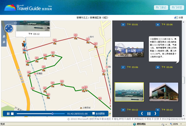 首頁線上工具未分類 Microsoft Travel Guide 微軟出品的中國大陸旅遊指南(附上海世博會及周邊旅遊線路圖) 很多人很喜歡到中國大陸旅遊,例如現在最熱的上海世博會,去參觀了各國展覽館之外,那上海周邊還有什麼地方可以去的呢?景點特色?當地有名的小吃餐飲?行程怎麼規劃?這些通通交給 Microsoft Travel Guide 微軟出品的中國大陸旅遊指南來告訴你,另外針對此次的上海世博會更推出世博線路圖及其周邊旅遊線路圖,完整的帶您完成上海世博行。 🔔 不錯過任何精彩! 立即訂閱我們的 LINE 官方帳號 每次發佈新文章時,您將會第一時間收到本站文章連結通知,輕鬆掌握最新資訊! 使用 LINE 追蹤文章更新 §相關文章,還可以參閱:Google 親揭爆紅 AI 模型為何叫「Nano Banana」,答案出乎意料「半夜亂取的名字」爆紅全球!Google揭密 Nano Banana 命名背後的意外故事Luckydraw:最佳線上抽獎工具,適合尾牙、婚禮及各項活動抽獎How Old Do I Look:免費線上 AI 年齡分析工具,輕鬆測試你的看起來年齡Google 宣布 goo.gl 縮址服務即將停止 ,但已建立的永久有效 如何使用 Microsoft Travel Guide? 1.進入 Microsoft Travel Guide 網站後,馬上就可以在左邊看到熱門景點及右邊欄的中國大陸的電子地圖。 2.此時可以在左邊欄的上方頁籤依照各月份的熱門景點、專題或周邊來選擇感興趣的主題,例如對專題頁籤中的古鎮感興趣,便點擊[悠悠古鎮],此時左邊欄便會列出所有蒐集到關於古鎮的旅遊資訊。 3.點擊左邊欄中感興趣的地點,例如[鳳凰(縣)],點擊後便會列出詳細資訊,包含了火車、飛機、旅遊團、景點、餐廳、旅館、遊記、問答及交通線路,點擊其中任一項就有更詳盡的介紹。 4.另外提供瀏覽上海世博會線路圖及上海市區外景點旅遊 一键快速浏览世博线路 一轴四馆 世博园区游(A区) 世博园区游(B区) 世博园区游(C区) 世博园区游(D区) 世博园区游(E区) 欧美展馆大联展(C区) 浦东之旅 上海世博购物行 上海市区外景点游 點擊任一項,便會連結到 Microsoft Travel Guide,點擊中間的向右箭頭便可開始互動旅程。 Microsoft Travel Guide網站網址:http://travel.msra.cn/