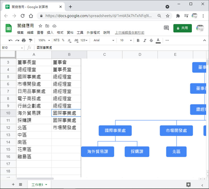 如何利用「Google 文件」搭配「Google 試算表」輕鬆做出容易維護的組織結構圖?