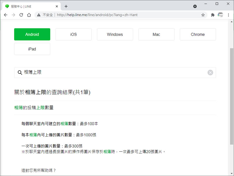 首頁電腦軟體社群與通訊 如何將 LINE 變成可備份相片的雲端硬碟? 相片是很多人一輩子的紀錄,因此當 Google 宣布旗下的「相簿」服務,不再是無限容量的免費服務後,又該如何儲存這些相片呢?當然,付費是絕對可以考慮的方案,畢竟「Google 相簿」不是只有儲存,還有相當多的附加服務,如果不想付費,也可以使用 Microsoft 的 OneDrive 雲端硬碟來儲存,另外,也可以考慮利用 LINE 來建立一人群組,然後利用群組內的相簿功能來儲存相片,優點是隨時可以操作存取,缺點是必須自己手動及相片會被壓縮,至於可以儲存的相片上限,按照 LINE 官網說明,每個聊天室內可建立的相簿數量,最多100本,每本相簿內可上傳的圖片數量,最多1000張,換算後就是 10萬張圖片。 🔔 不錯過任何精彩! 立即訂閱我們的 LINE 官方帳號 每次發佈新文章時,您將會第一時間收到本站文章連結通知,輕鬆掌握最新資訊! 使用 LINE 追蹤文章更新 §相關文章,還可以參閱:[ LINE ]如何傳送訊息給自己?[ LINE ]如何用電腦版還原條碼內容?[ LINE ]如何設定單一或全部好友的聊天室背景?[ LINE ]如何傳送「無聲訊息」?Free Facebook Monitoring 監控 Facebook 上的活動並擷取成圖片 如何將 LINE 變成可備份相片的雲端硬碟? 1.開啟 line,主頁 > 群組 > 建立群組,不用加入任何的好友,點擊[ 下一步 ],建立一個只有自己一個人的群組。 2.可以為群組起名後,按[ 建立] 。 3.建立相簿並開始上傳圖片,這樣就可以完成相片的儲存。 4.至於相簿可以儲存多少圖片,我們可以到 LINE 官方網站取得說明。