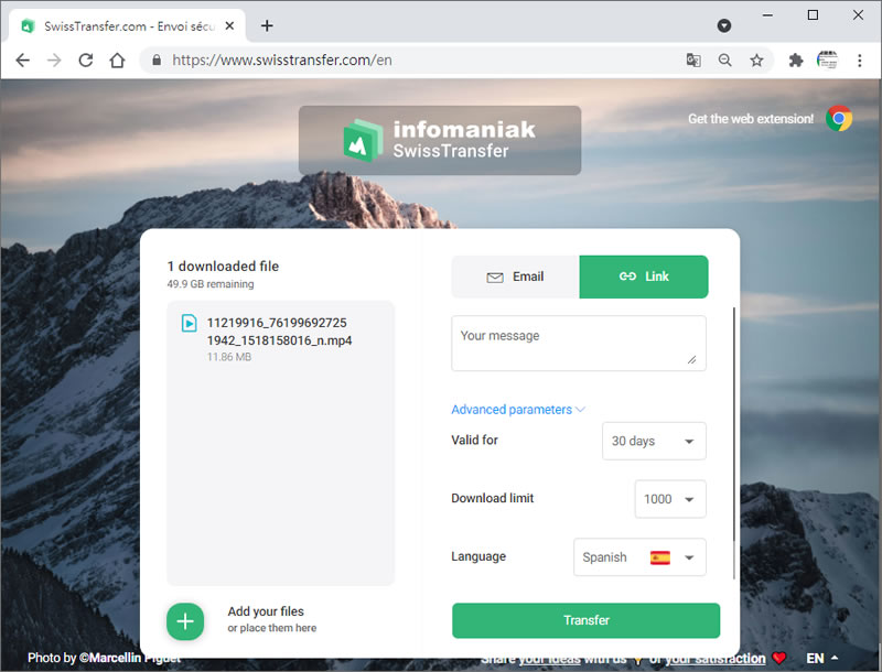 首頁線上工具上傳下載 SwissTransfer 線上就可傳送 50GB以內的檔案 如果一個檔案要分成好幾個小檔案來傳送給接收者,傳送者要記得傳送到第幾個檔案不要重複也不要漏傳,接收者收到後也要檢查還要去合併才能使用,說實在話雙方都是困擾,SwissTransfer 是個可以線上傳送檔案的免費服務,支援 50GB內的檔案,傳送者可設定檔案的下載有效天數及可下載次數,更可以設定下載密碼,用以保護檔案不會輕易遭人下載,該服務免註冊隨時可用。 🔔 不錯過任何精彩! 立即訂閱我們的 LINE 官方帳號 每次發佈新文章時,您將會第一時間收到本站文章連結通知,輕鬆掌握最新資訊! 使用 LINE 追蹤文章更新 §相關文章,還可以參閱:M3U8 Player:本地瀏覽器處理,播放、下載、轉 MP4 一站免費完成getM3U8 免費線上工具:輕鬆下載 M3U8 串流影片並轉檔 MP4SnapWC 免費影片下載器:一鍵搞定 YT、IG、FB、抖音等 10,000+ 平台影片、音訊、圖片需要分享圖片連結?試試 PiXhost 免費圖床服務P2PFileShare 線上 P2P 傳檔免費工具,免安裝無檔案大小限制直接瀏覽器傳輸 如何使用 SwissTransfer 傳送檔案? 1.使用瀏覽器進入 SwissTransfer,會有提示使用規範。 2.同意後,便可進入檔案上傳頁面,透過滑鼠左鍵將檔案拖拉放到[ + ]號圖示位置,便會開始上傳。 3.完成上傳後,傳送者可以設定要使用 Email 或是使用 link 來傳送檔案連結,並展開[ Advanced parameters ]選向來設定下載連結的有效天數、下載次數及下載密碼,設定好之後,按[ Transfer ]。 4.複製產生的檔案下載連結給接收者,接收者同樣開啟瀏覽器輸入下載連結,便可以下載。 SwissTransfer網站網址:https://www.swisstransfer.com/en