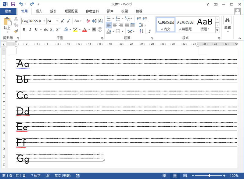 首頁免費字型英文字型 EngTRESS Font 英文字母標準字型,解決學習困擾 許多家長在教剛學習英文字母,若是想要製作一些教材時,通常英文預設字型是 Times New Roman, 但偏偏小寫a,g 與一般手寫 a, g 會不同,而且 Times New Roman 為了美觀,該字型設計的有稜有角,常會誤以為一定要畫出那些線條。為此,就必須改用 Comic Sans MS 字型,但此字型不夠端正,且小寫 t,大寫G, M 及Y 都與一般教學寫法有所出入,若改用 Arial 字型,是夠端正,但小寫 a 及大寫 I 又不合標準,而且所有字型都沒有輔助初學者的格線可以使用。EngTRESS 是一套標準英文字型,也能產生格線,對於有心要製作教材的家長或老師都有很大的幫助。 🔔 不錯過任何精彩! 立即訂閱我們的 LINE 官方帳號 每次發佈新文章時,您將會第一時間收到本站文章連結通知,輕鬆掌握最新資訊! 使用 LINE 追蹤文章更新 §相關文章,還可以參閱:免費可商用!Google Sans Flex 開源下載,可變軸設計讓一款字體抵千款Fontshare 免費英文字型下載資源,可供個人和商業用途使用精選免費英文字型 Best Free Fonts:Serif、Sans Serif、Display 等可商用字體一次收錄Departure Mono:免費等寬像素英文字型,SIL 授權可商用Server Mono 英文字體:具清晰可讀及商業友好的等寬字體,靈感來自打字機與命令列字體 如何安裝 EngTRESS 新字型 ? 1.下載並開啟 EngTRESS.TTC 字型檔,扁可以預覽或安裝該字型,確定安裝完成後,會在字型裡同時產生 EngTRESS A 及EngTRESS B 兩套字型。 2.安裝完成後,會在字型裡同時產生 EngTRESS A 及EngTRESS B 兩套字型。 3.若要製作英文字母學習單,可開啟 Word 、記事本軟體或是其他文書編輯軟體,輸入時候的字型選擇 EngTRESS A 及EngTRESS B,若是選擇 EngTRESS B 時,要產生後面的格線,可按鍵盤的空白鍵即可。 4.下圖是常用字型比較,可參考看看。 EngTRESS 字型性質:免費官方網站:http://procet.eng.ntnu.edu.tw/mod/folder/view.php?id=681下載: 按我下載(1) 按我下載(2) 備用下載點
