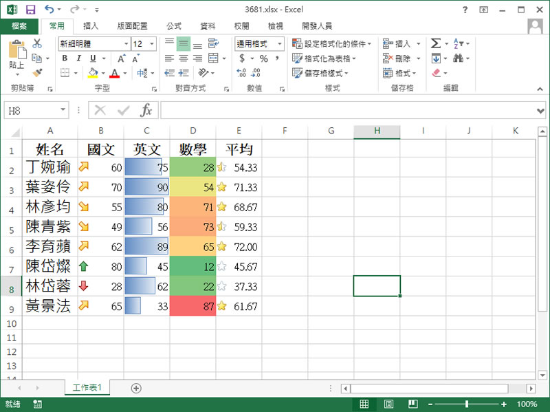 首頁操作技巧Excel [ Excel ]如何使用圖示集來凸顯儲存格內的值? 在一堆的數據中,如果沒有特殊條件的標示,估計閱讀的人要耗費的心思也不輸製表人,以學生的成績來說好了,要列出所有學生的各科成績、平均應該都不難,但,數據這麼多,如果都是同一個顏色來顯示,這對看報表的人來說,實在無法一眼就看出成績之間的落差,在 Excel 中,我們可以透過格式化條件以資料橫條、色階或是圖示集來凸顯儲存格內的值,如此一來,對閱讀報表的人來說,也能快速掌握報表內的重點,快速做出決策。 🔔 不錯過任何精彩! 立即訂閱我們的 LINE 官方帳號 每次發佈新文章時,您將會第一時間收到本站文章連結通知,輕鬆掌握最新資訊! 使用 LINE 追蹤文章更新 §相關文章,還可以參閱:[ Excel、 Google 試算表 ] 如何找出最大值或最小值?[ Excel ]如何為「行」進行編號?[ Excel ]如何使用「交叉分析篩選器」快速篩選表格內的數據?[ Excel ]如何在圖表中以人形圖像呈現數據資料?[ Excel ]如何計算新舊兩數字的相差百分比? [ Excel ]如何使用圖示集來凸顯儲存格內的值? 1.以下表的資料為例。 2.先選定儲存格 B2:B9後,在上方功能表按[ 設定格式化條件 ] > [ 圖示集 ] 3.在 B2儲存格就可以看到剛剛所選的圖示集,接下來按[ 新增規則 ],在格式樣式選擇[ 圖示集 ]。 4.在圖示樣式選擇[ 圖示集 ]。 5.針對每個圖示,給訂條件。 6.按照此一作法,便可以讓數據更有視覺化效果。