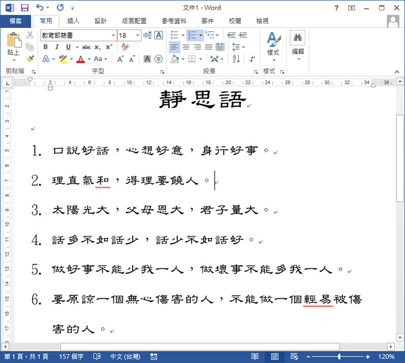 4.開啟文書編輯應用程式後,便可以將字形指到剛剛所安裝的字形。