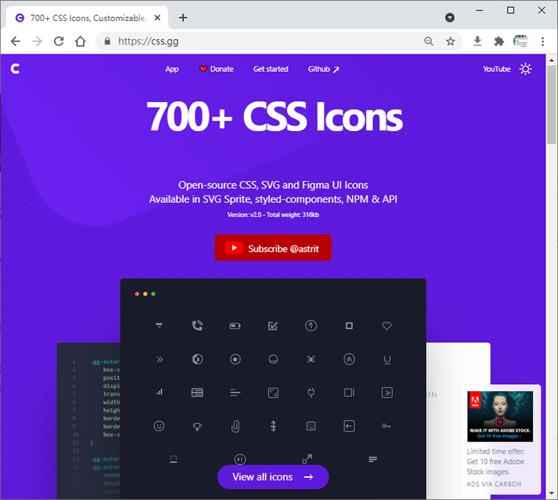 首頁免費素材圖像圖示 CSS.GG 免費圖示字型集,透過 CSS 語法就可應用 在網頁中如果要用圖示,例如電話、郵件或是箭頭,以往的做法就是要有該圖示的圖片檔,將其放在指定的位置,但隨著螢幕大小多元化,固定尺寸的圖示圖片檔,缺點盡顯,除了佔用流量外,亦無法滿足螢幕大小的變化,因此將圖示如同網頁字形般的運用,是目前圖示應用在網頁的做法。不論是 Unicode、Icons - Google Fonts 、Font Awesome 都有提供適合在網頁中使用的字形化圖示集,CSS.GG 這個網站同樣提供免費的字形化圖示集,使用者可以自訂顏色、尺寸,再透過其所提供的 HTML,CSS、SVG 或是 TSX 語法就能應用到網頁上。 🔔 不錯過任何精彩! 立即訂閱我們的 LINE 官方帳號 每次發佈新文章時,您將會第一時間收到本站文章連結通知,輕鬆掌握最新資訊! 使用 LINE 追蹤文章更新 §相關文章,還可以參閱:精心打造的等距美學:Isocons 免費圖示資源庫,CC BY 4.0 授權Map-It:日本地圖素材的免費寶庫,從全國到市町村一網打盡PICaboo! 日系可愛免費向量圖素材庫:設計師必收的創作寶庫GAHAG:日本免費圖庫新選擇,結合アハ體驗互動遊戲的創意素材平台illust STAMPO:日式風格的免費插圖素材網站 如何使用 CSS.GG? 1.使用瀏覽器進入 CSS.GG,點擊[ View all icons ]就可以查看全部的圖示集。 2.點擊圖示後,會友該圖示的詳細資料。 3.也可以自訂顏色。 4.而其下方就有提供相對應的語法。 5.如果需要整個圖示集,可以在右側方選擇所需要的格式語法來下載。 CSS.GG網站網址:https://css.gg/
