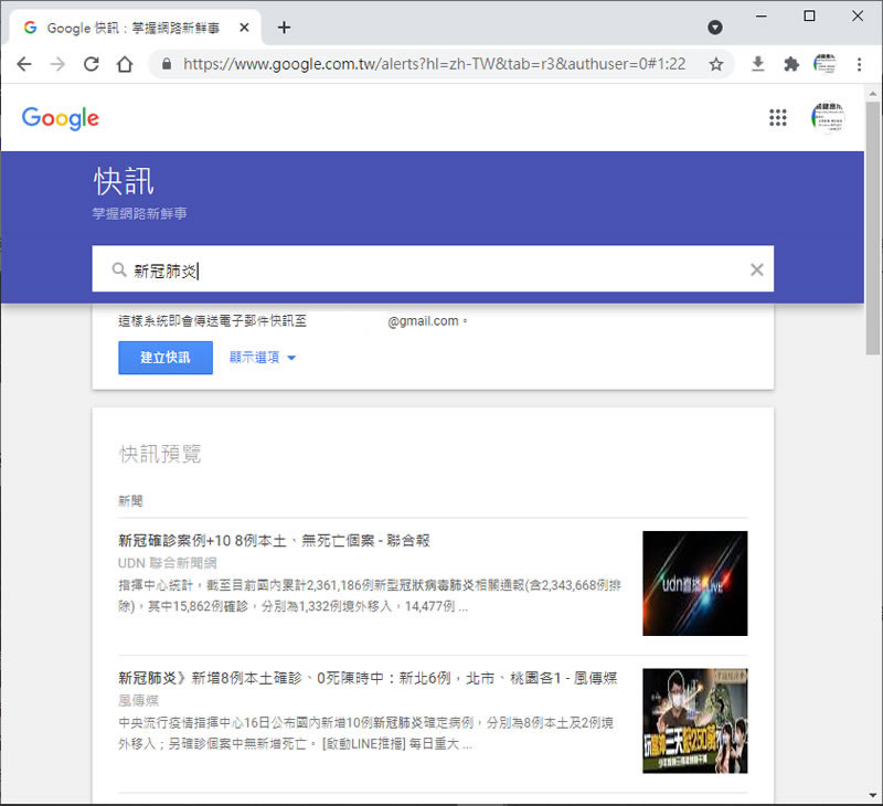 首頁操作技巧Google 如何使用「Google 快訊」蒐集所關心的新聞資訊? 網路多元化的發展,也使得資訊來源不再侷限於電視、報紙等特定媒體,想要即時知道自己所關注的新聞消息,也不必時時刻刻去透過搜尋引擎輸入關鍵字來搜尋,我們可以利用「Google 快訊」的功能,輸入所關注的關鍵字, Google 就能利用電子郵件隨時回報,讓你即時掌握相關新聞資訊。 🔔 不錯過任何精彩! 立即訂閱我們的 LINE 官方帳號 每次發佈新文章時,您將會第一時間收到本站文章連結通知,輕鬆掌握最新資訊! 使用 LINE 追蹤文章更新 §相關文章,還可以參閱:別再只會用兩指縮放 Google 地圖了!這些隱藏手勢讓你效率翻倍照著做就會!Google 官方釋出 NotebookLM 簡報製作的 8 種範例教學機車族專屬!Google Maps 推出 5 款超萌機車圖示 × 8 種顏色,設定步驟看這篇Google Skills:3000+ 門課程助你打造 AI 時代競爭力Google Vids 全解析:一文看懂功能、免費版限制及完整操作步驟 如何使用「Google 快訊」訂閱關鍵字資訊? 1.使用瀏覽器進入 「Google 快訊」訂閱管理網站後,可以輸入感興趣的關鍵字來建立快訊。 2.輸入關鍵字後,可以點擊[ 顯示選項 ],該選項可讓我們變更傳送的頻率、新聞來源以及要接收的方式,完成設定後按[ 建立快訊 ],。 3.完成建立後,我們可以隨時在管理面板進行選項變更。 4.訂閱的快訊會依照所設定的方式使用 eMail 傳送或是 RSS 來管理。