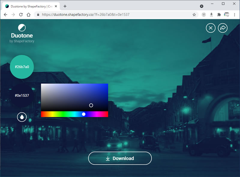 首頁線上工具影像繪圖 Duotones by ShapeFactory 可替圖片加入雙色調效果的免費線上服務 圖片後製項目中,色彩飽和度與濾鏡特效是很常用的技巧,以色彩飽和度來說,其指的是色彩的純度或鮮豔度,若在色相和明亮度保持不變的情況下,隨著彩度降低,橘色就會逐漸變成褐色、褐灰色,最後以中性灰色來呈現,因此,按照此一特性,後製的圖片就可以千變萬化。想要改變圖片與色彩飽和度相關的參數,可以透過圖片編輯軟體來達成,而 Duotones 這個網站,主要是提供替圖片加入雙色效果的免費服務,使用者上傳圖片後,可以任選兩種顏色,再由網站自動調整與色彩飽和度有關的參數,藉此創建出獨特效果的圖片,方便後續應用。 🔔 不錯過任何精彩! 立即訂閱我們的 LINE 官方帳號 每次發佈新文章時,您將會第一時間收到本站文章連結通知,輕鬆掌握最新資訊! 使用 LINE 追蹤文章更新 §相關文章,還可以參閱:照片角度不滿意?AI 幫你調整!3D Camera Control 讓舊照片任意變換視角Meta AI 免費帳戶也能用 Midjourney!無限生成 AI 圖片,台灣可用Nano Banana Pro 幫你放煙火,地點、形狀由你指定Mock.Club:免費 AI Mockup 素材庫,拖曳截圖立即生成專業展示圖Adobe 官方宣布:Photoshop、Express、Acrobat 免費整合 ChatGPT,免費版也能用 如何使用 Duotones 所提供的線上服務? 1.使用瀏覽器進入 Duotones 網站後,可以先來看看所提供的範例圖片。 2.透過左側的顏色選擇器,我們可以自選所要的色彩。 3.點擊右上角的上傳圖示按鈕,便可以進入上傳圖片的頁面。 4.將圖片滑鼠拖曳進環形圈圈內,便會套用雙色調色彩特效,調整滿意後,可按[ DOWNLOAD ]按鈕下載該圖片。 Duotones by ShapeFactory網站網址:https://duotone.shapefactory.co/?f=10c5f8&t=616188&q=_