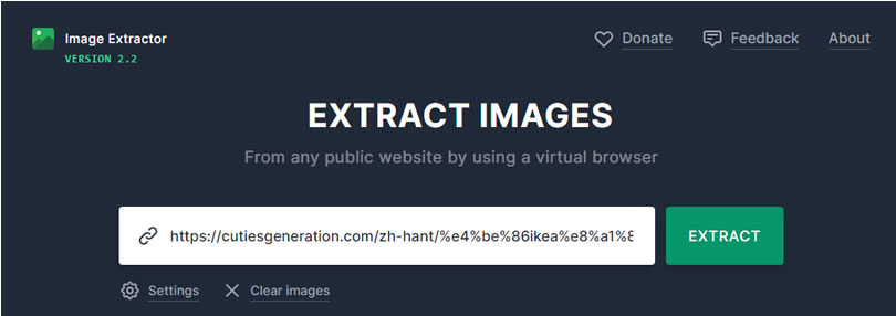 首頁線上工具上傳下載 Image Extractor 輸入網址就可以下載網頁內所有圖片的線上免費服務 如果要下載網頁內含的圖片,可以使用滑鼠右鍵點擊後,使用[ 另存圖片 ]的功能來下載,也可以使用滑鼠左鍵將圖片按住,拖曳到瀏覽器外來下載,但不管如何,兩者都是對單張圖片的操作,如果網頁圖片較多,就常會有重複或遺漏下載的情形發生,而 Image Extractor 這個網站是個輸入網址就可以下載網頁內所有圖片的免費服務,其操作步驟相當簡單,只要將網址輸入後,就會顯示該網頁內的所有圖片,使用者可以自選想要下載的圖片,一次完成所選圖片的下載,且該服務無須註冊,亦無使用次數限制,簡單方便。 🔔 不錯過任何精彩! 立即訂閱我們的 LINE 官方帳號 每次發佈新文章時,您將會第一時間收到本站文章連結通知,輕鬆掌握最新資訊! 使用 LINE 追蹤文章更新 §相關文章,還可以參閱:M3U8 Player:本地瀏覽器處理,播放、下載、轉 MP4 一站免費完成getM3U8 免費線上工具:輕鬆下載 M3U8 串流影片並轉檔 MP4SnapWC 免費影片下載器:一鍵搞定 YT、IG、FB、抖音等 10,000+ 平台影片、音訊、圖片需要分享圖片連結?試試 PiXhost 免費圖床服務P2PFileShare 線上 P2P 傳檔免費工具,免安裝無檔案大小限制直接瀏覽器傳輸 如何使用「Image Extractor」下載網址內所有的圖片? 1.使用瀏覽器進入 Image Extractor 網站,將網址貼到輸入框後,點擊[ EXTRACT ]便會開始擷取輸入網址的內含圖片。 2.顯示網頁內所有圖片後,如果全部都要下載,就可以按[ Select all ],再按[ Download selected ]即可。 3.如果不是所有的圖片都要下載,我們可以透過排序加快篩選所要的圖片後再選擇;下載的檔案為壓縮檔,解壓縮後,即可以看到圖片。 4.如果需要網站記住最後一次下載的網址或是使用原圖片的檔案名稱,可以點擊輸入框下方的[ Settings ]來設定。 Image Extractor網站網址:https://extract.pics/