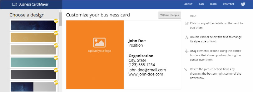 首頁線上工具生產力工具 Business Card Maker 線上名片產生器 交換名片在許多社交場合是結交新朋友的第一步,如果是在公司上班,通常會有制式的格式幫你製作,如果是個人需求可以來 Business Card Maker 這個名片線上產生器試試,該網站提供可上傳 LOGO、更換文字資訊及背景圖片的模板讓使用者直接套用,只要不是內容太複雜的名片,應該都適用,產生的名片可以下載成圖檔或是 PDF 檔案,不論是要實體列印出或是電子傳送都相當方便。 🔔 不錯過任何精彩! 立即訂閱我們的 LINE 官方帳號 每次發佈新文章時,您將會第一時間收到本站文章連結通知,輕鬆掌握最新資訊! 使用 LINE 追蹤文章更新 §相關文章,還可以參閱:OpenAI 在 ChatGPT 中測試廣告|哪些帳戶受影響、廣告運作原則一次看在蝦皮當賣家,商品如何定價?手續費、免運、稅金怎麼算?蝦皮手續費計算機幫你全搞定!Google AI Plus 降到 260 元對決 ChatGPT Go!誰的功能更值得訂閱?ChatGPT Go 月付 290 元值得嗎?免費版、Plus 完整比較用 AI 做出的電影,YouTube 就看得到!一起來欣賞這部贏得百萬美元的突尼西亞短片《Lily》 如何使用 Business Card Make 產生名片? 1.使用瀏覽器進入 Business Card Make 網站,可以看到內含一張圖片及文字資訊的模板,而在其右側是可更換的背景圖片。 2.經過簡單的上傳圖片、更改文字資訊及選擇背景圖,一張新名片就產生出來了。 3.不同的背景,資訊的分布會自動調整,可自行微調,完成後,可以下載成 PDF或圖檔。 Business Card Make網站網址:https://www.bizcardmaker.com/#/?theme=theme-half--orange