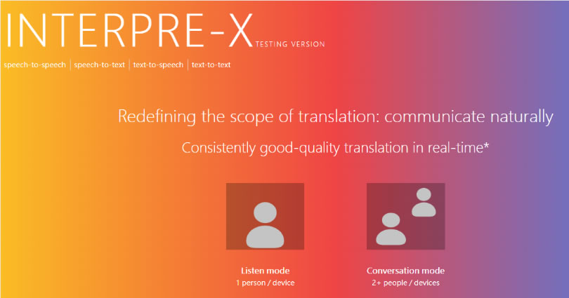 只會說中文要如何跟只會說俄語的人溝通,又講日語如何跟講德語的人溝通,類似的情境有非常多種組合,而不管是哪種組合,均拜翻譯科技的進步而得以打破語言障礙,解決互相溝通的問題。INTERPRE-X 是個透過即時翻譯後轉語音輸出,實現語音自然交流的免費線上服務,支援的語言有中文、英語、俄語、日語、西班牙語、法語、義大利及葡萄牙語,其提供即時翻譯後的語音輸出,輸入源可以是文字或採語音輸入,並即時翻譯出使用者所選的目標語音後輸出,多人使用時,可以在同個聊天室內,實現語音到語音、語音轉文字、文字轉語音、文字轉文字多種語言在同一個聊天室內進行無障礙溝通。