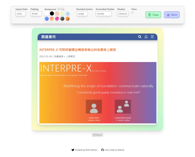 首頁線上工具影像繪圖 Pika:免費圖片外觀美化工具,輕鬆實現圓角、陰影、背景色等簡單修飾 不論是自己拍攝、網路下載或截圖而來的圖片,除了能夠對圖片內容進行各種特效處理外,若只想簡單地對其外觀進行修飾,比如將原本四周直角的圖片改為圓角,或為其添加陰影或背景色等,無需啟用繁複的圖片編輯軟體,只需使用免費的圖片外觀美化工具 Pika,即可輕鬆完成需求。 Pika 提供了直觀且簡單易用的界面,使得對圖片進行外觀調整變得輕而易舉。無論您是專業設計師還是普通用戶,Pika 都是一個方便快捷的工具,讓您在不浪費過多時間的情況下,為圖片增添更多風采。 🔔 不錯過任何精彩! 立即訂閱我們的 LINE 官方帳號 每次發佈新文章時,您將會第一時間收到本站文章連結通知,輕鬆掌握最新資訊! 使用 LINE 追蹤文章更新 §相關文章,還可以參閱:跟著做就會!教你用 ChatGPT 製作具職業形象的漫畫風頭像Put!所見即所得的 AI 提示詞圖庫:讓你看著範例圖,複製就能做出同級作品Google 親自示範:Nano Banana AI 圖像編輯工具的 13 個熱門玩法照片角度不滿意?AI 幫你調整!3D Camera Control 讓舊照片任意變換視角Meta AI 免費帳戶也能用 Midjourney!無限生成 AI 圖片,台灣可用 如何使用 Pika 美化圖片? 1.使用瀏覽器進入 Pika 網站,點擊中間虛線處便可以選擇電腦內的圖片。 2.例如利用 Edge 瀏覽器內建的擷取圖片功能所擷取出的圖片,複製後,即可貼上,貼上後預設就會幫你美化。 3.透過上方的工具,我們可以進行各項參數的調整,完成後的圖片,可按[ Copy ]貼到圖片編輯工具內秩序編輯,或是按[ Save ]儲存。 Pika網站網址:https://pika.rishimohan.me/