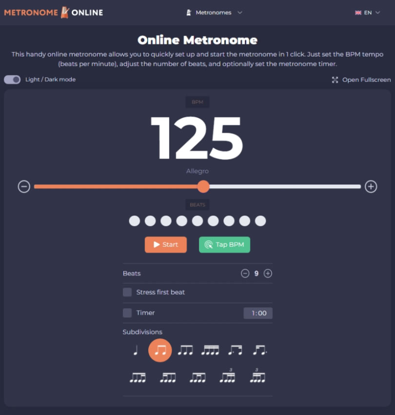 首頁線上工具生產力工具 Online Metronome 有瀏覽器就可用的節拍器 在運動的時候使用節拍器,例如從事走路、跑步時可以規範自己跨步的頻率,讓運動產生更好的效率,要使用節拍器,可以在自己手機上安裝節拍器 APP,如果不想安裝,也可以來使用 Online Metronome 這個線上節拍器免費服務,該服務可由使用者自行調整每分鐘 1 到 240 節拍數且可以自訂節拍計時器,且每小節中的第一拍可加重音提示,且可以自選 4、3 或 2 個節拍,要使用時,只需打開手機上的瀏覽器連上 Online Metronome 網站,就可以開始使用。 🔔 不錯過任何精彩! 立即訂閱我們的 LINE 官方帳號 每次發佈新文章時,您將會第一時間收到本站文章連結通知,輕鬆掌握最新資訊! 使用 LINE 追蹤文章更新 §相關文章,還可以參閱:Google AI Plus 降到 260 元對決 ChatGPT Go!誰的功能更值得訂閱?ChatGPT Go 月付 290 元值得嗎?免費版、Plus 完整比較用 AI 做出的電影,YouTube 就看得到!一起來欣賞這部贏得百萬美元的突尼西亞短片《Lily》Apple Creator Studio 來了:Final Cut Pro、Logic Pro 等九款 App 月付 390 元,學生優惠僅 90 元ChatGPT 智慧購物功能登台!台灣用戶也能用 AI 做商品研究與比價 如何使用 Online Metronome 線上節拍器? 1.使用瀏覽器進入 Online Metronome 網站,預設的 BPM 是每分鐘 120個節拍數,可以按[ Start ]先試試。 2.Light / Dark mode 及 Open Fullscreen 分別可以切換顯示顏色與全螢幕切換。 3.Beats 可以調整節拍循環頻率 Stress first beat:可以讓每個尋懷的第一拍產生不同的提示音。 Timer:可以設定節拍器運作倒數計時器。 Subdivisions:可設定節拍音節數。 4.如果覺得這麼多的設定麻煩,也可以將網頁拉到最下方,使用以搭配好的各種設定。 Online Metronome網站網址:https://metronome-online.com/