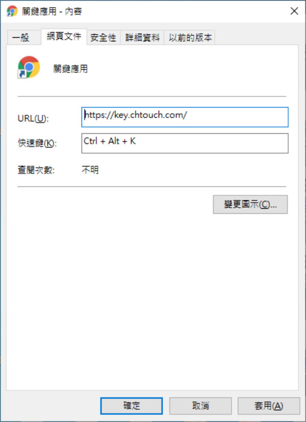 首頁操作技巧Windows [ Windows ]如何替網站建立鍵盤快速鍵方便快速開啟? Windows 除了系統內建的鍵盤快速鍵之外,對於使用者而言,也可以按照其規則建立自定義的鍵盤快速鍵,例如常需要開啟某個特定的資料夾,我們就可以自定義一個鍵盤快速鍵來快速開啟,又或是常常瀏覽的網站,我們也可以替該網站建立桌面捷徑,然後賦予一個鍵盤快速鍵,下次要開啟時,就不需要經過開啟瀏覽器 、輸入網址才能開始瀏覽的步驟,直接透過自定義的鍵盤快速鍵就可以一次到位,加快網站瀏覽效率。 🔔 不錯過任何精彩! 立即訂閱我們的 LINE 官方帳號 每次發佈新文章時,您將會第一時間收到本站文章連結通知,輕鬆掌握最新資訊! 使用 LINE 追蹤文章更新 §相關文章,還可以參閱:你的 Windows 筆電是真睡還是裝睡?一個設定終結背包發熱耗電學起來!微軟親授 10 個提升 Windows PC 效能的技巧如何升級 Windows 11 25H2?最新版本功能亮點與完整更新步驟Windows 工作列時鐘顯示秒數:真的會影響電池續航力嗎?LTT Labs 完整實測解析Windows 快速取出資料夾檔案名稱清單!內建功能輕鬆搞定,不用額外軟體 [ Windows ]如何替網站建立鍵盤快速鍵方便快速開啟? 1.要替網站建立鍵盤快速鍵,需要先替網站建立桌面捷徑,建立桌面捷徑的方式很簡單,只需要將網址列的鎖頭圖示,使用滑鼠拖曳到桌面上,就可以完成,相關操作,可參閱 [ Edge、Chrome ]如何建立網站捷徑到 Windows 桌面?這篇文章,完成網站桌面捷徑的建立後,使用滑鼠右鍵點擊該捷徑,並在出現的快速功能表中,按[ 內容 ]。 2.開啟內容視窗後,切換到[ 網頁文件 ]頁籤,就可以看到快速鍵。 3.根據規則,只能使用 Ctrl + Alt + 自定義,前面的 Ctrl + Alt 是固定的,使用者可以自定義一個數字或英文字母,例如 Ctrl + Alt + k,或是 Ctrl + Alt + 2 等類似的鍵盤快速鍵,定義完成後,記得要按[ 確定 ]按鈕。 ※完成網站鍵盤快速鍵的建立後,下次要啟動時,直接在桌面上使用 [ Ctrl + Alt + K ]便可以快速啟動瀏覽器並瀏覽到該網站。