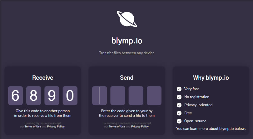 首頁線上工具上傳下載 blymp.io 使用瀏覽器就可以在不同裝置間傳送檔案 電腦、平板與手機三者之間要如何互相傳送檔案呢?現行的方案,大都是利用雲端硬碟或是在設備間安裝同一套的應用程式來解決,但在某些情境下又會衍生多帳號的麻煩。blymp.io 這個網站提供只要透過設備上都有的瀏覽器,就可以利用 WebRTC(網頁即時通訊)的方式傳送檔案,且無檔案大小限制,其操作方式相當簡單,進入網站後,雙方都會得到傳送碼與輸入接收碼的提示,自己要接收要接收對方的檔案,則請對方在 Send 處,輸入自己的 Receive Code;自己要傳送檔案給對方,則是自己要在 Send 處輸入對方的 Receive Code,用以完成雙方驗證並連線,就可已開始傳送檔案了。 🔔 不錯過任何精彩! 立即訂閱我們的 LINE 官方帳號 每次發佈新文章時,您將會第一時間收到本站文章連結通知,輕鬆掌握最新資訊! 使用 LINE 追蹤文章更新 §相關文章,還可以參閱:M3U8 Player:本地瀏覽器處理,播放、下載、轉 MP4 一站免費完成getM3U8 免費線上工具:輕鬆下載 M3U8 串流影片並轉檔 MP4SnapWC 免費影片下載器:一鍵搞定 YT、IG、FB、抖音等 10,000+ 平台影片、音訊、圖片需要分享圖片連結?試試 PiXhost 免費圖床服務P2PFileShare 線上 P2P 傳檔免費工具,免安裝無檔案大小限制直接瀏覽器傳輸 如何使用 blymp.io 在不同的裝置間傳送檔案? 1.雙方都使用瀏覽器進入 blymp.io 網站,無須註冊就可以使用。 2.將 Receive 下方的 4個數字碼,通知傳送方,對方則在 Send 處輸入,就可以建立連線。 3.建立連線後,對方就可以開始傳送檔案給自己,下圖左側是對方輸入自己給出的 Receive Code 就可選擇要傳送的檔案;而右側是自己的瀏覽器會處在等待接收的狀態。 blymp.io網站網址:https://blymp.io/#/