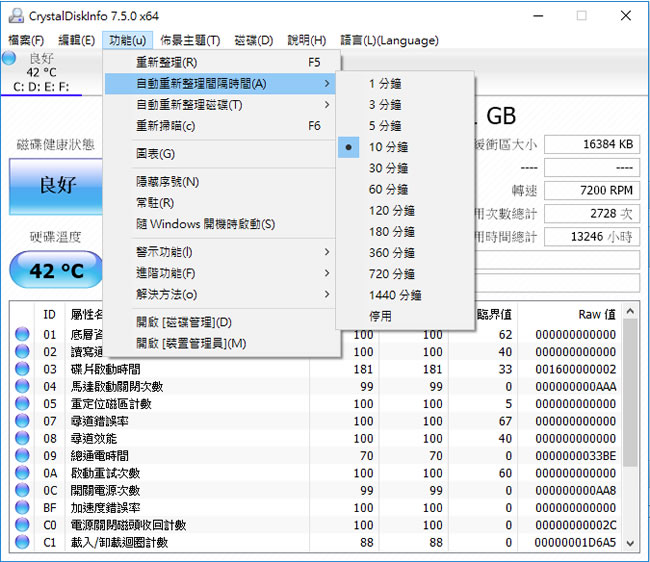 首頁電腦軟體系統應用 CrystalDiskInfo 電腦硬碟檢測免費工具( 繁體中文免安裝版) 對電腦而言,所有的資料都是儲存在硬碟,然而硬碟要毀損前是不會事先通知,只有定期做好備份才能免於一旦硬碟毀損後的所帶來的損失,想要知道目前硬碟的健康情形,我們可以利用硬碟檢測工具來執行,或是利用 Windows 設定功能內的系統 > 儲存體 > 磁碟和磁碟區所顯示的資訊做一些簡單的判斷。CrystalDiskInfo 是一套可以檢測電腦內目前硬碟的健康狀態、即時溫度與一連串的數據包含傳輸效能、啟動 / 停止次數、目前停用磁區數、無法修正的磁區總數...等等的一套免費軟體,若硬碟有壞軌或其他問題,可先一步以燈號通知,避免因硬碟損壞造成的損失。 🔔 不錯過任何精彩! 立即訂閱我們的 LINE 官方帳號 每次發佈新文章時,您將會第一時間收到本站文章連結通知,輕鬆掌握最新資訊! 使用 LINE 追蹤文章更新 §相關文章,還可以參閱:CatLock:可鎖定鍵盤的 Windows 應用程式,防止寵物意外觸碰Zen Ad blocker 瀏覽器與應用程式均適用的廣告攔截器,免費且開放原始碼TimVer 一站式顯示 Windows 版本及電腦硬體相關訊息的工具「微軟電腦管家」內含開機啟動項目管理、儲存空間最佳化等免費工具 全方位提升電腦效能Windows Startup Timer 測量 Windows 從開機到完全啟動所需時間 如何使用 CrystalDiskInfo ? 1.下載免安裝版並解壓縮,根據作業系統選擇執行「DiskInfo32.exe 或 DiskInfo64.exe」便可開啟。 2.開啟後會自動偵測目前電腦硬碟狀況及溫度及自動根據所使用的 Windows 語言選擇介面語言,若要手動變更,可點擊[ 語言 ]根據國家英文名稱的開頭字母來選擇。 3.可在上方功能表[ 功能 ]的子功能中進行一些系統設定,包含自動重新整理的間隔時間、溫度單位的切換或是隨 Windows 開機啟用...等等。 4.另外也可以點擊[ 功能 ] >[ 圖表 ],使用圖表的方式來檢視。 CrystalDiskInfo版本:8.17.14語言:繁體中文(多國語言)性質:免費適用:Windows官方網站:https://crystalmark.info/en/下載: 免安裝版 按我下載 安裝版 按我下載