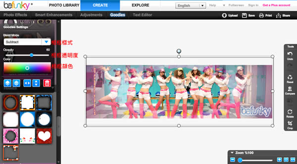 首頁線上工具影像繪圖 befunky 線上圖片編輯,加入效果、文字、對話框等 befunky 是一個提供線上編輯圖片及加入效果的免費服務網站,除了提供基本的自動與手動修正圖片,包含像是亮度及色差等之外,befunky 也提供豐富的可加入相片的圖示、相框、文字效果、增加圖片的美觀度。 🔔 不錯過任何精彩! 立即訂閱我們的 LINE 官方帳號 每次發佈新文章時,您將會第一時間收到本站文章連結通知,輕鬆掌握最新資訊! 使用 LINE 追蹤文章更新 §相關文章,還可以參閱:跟著做就會!教你用 ChatGPT 製作具職業形象的漫畫風頭像Put!所見即所得的 AI 提示詞圖庫:讓你看著範例圖,複製就能做出同級作品Google 親自示範:Nano Banana AI 圖像編輯工具的 13 個熱門玩法照片角度不滿意?AI 幫你調整!3D Camera Control 讓舊照片任意變換視角Meta AI 免費帳戶也能用 Midjourney!無限生成 AI 圖片,台灣可用 如何使用 befunky? 1.進入 befunky 網站後,點擊[Apply Photo Effetcs >>]。 2.接下來就會進入圖片編輯區,點擊[Upload],並在出現的功能表中,選擇相片的來源,例如從本機電腦就可以點擊[Upload from PC]。 3.選擇好圖片後,便可開始運用 befunky 所提供的功能。 4.例如想加入一個相框,點擊[Goodies]後,在左邊欄點擊[frames]並將喜愛的樣式拖拉到編輯區上,利用所提供的工具調整相框。 5.若想加入文字或其他效果,其步驟均相似。對於編輯好的相片,若要儲存到本機電腦可點擊右上方的[Save]或分享[Share]。 befunky網站網址:http://www.befunky.com/