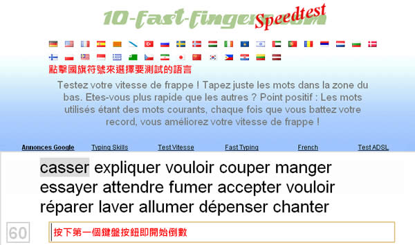 首頁教育學習打字練習 speedtest 打字速度測試,看看一分鐘可以打多少個字及排名(多國語言) 想知道自己英文打字速度有多快嗎?目前在測試者中的排名?來 speedtest 這個網站免費測試看看,不過標題寫的是(多國語言),雖有中文卻是簡體,若還是想要使用注音或倉頡來測試,可以參考 如何使用微軟新注音輸入法 2010 ,打注音符號輸出簡體中文字 。 🔔 不錯過任何精彩! 立即訂閱我們的 LINE 官方帳號 每次發佈新文章時,您將會第一時間收到本站文章連結通知,輕鬆掌握最新資訊! 使用 LINE 追蹤文章更新 §相關文章,還可以參閱:Live Typing Test:免費線上英文打字測試,提升速度與準確率typings:多語言線上免費打字練習工具,專為提升打字技能而設計Monkeytype 線上英打練習免費服務 快速提升打字速度與正確率TypingCat 提供英文打字課程、速度測試的免費網站「花蓮縣打字練習網」線上中、英文及注音符號打字練習 如何使用 speedtest? 1.進入 speedtest 後,先挑選所要測試的語言。 2.按照頁面給出的指定測試字並輸入到輸入框中,若打錯字會出現紅字,正確會出現綠色字。 3.在左方有讀秒,時間到了將會強制停止輸入並轉向統計頁面,包含一分鐘內打了多少字?正確的單字有多少?錯誤的單字有多少?並顯示在英打裡的打字速度排名,還可以分享打字速度的結果到社群網站,像是個人的網站、部落格、FaceBook 或是 Twitter。 speedtest網站網址:http://speedtest.10-fast-fingers.com/