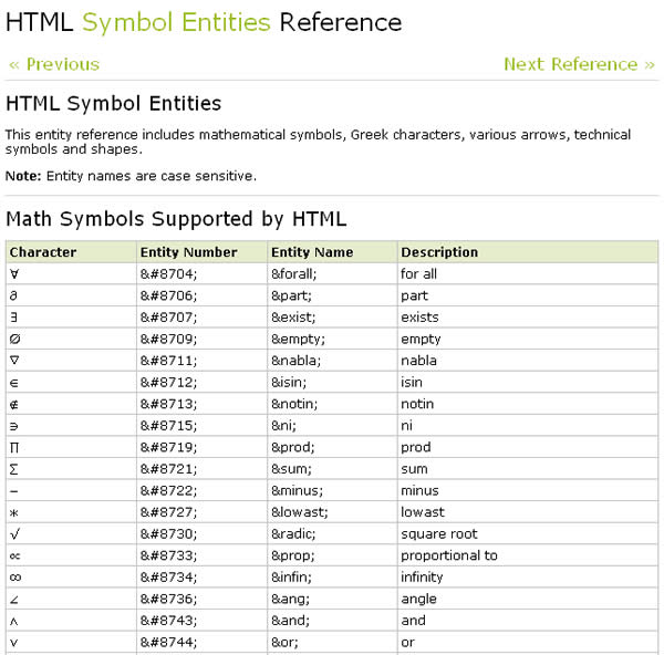 首頁線上工具開發工具 如何在網頁裡輸入特殊符號(數學符號、希臘字符、各種箭頭、技術符號及形狀)? 有時候需要編輯網頁時需要用到數學符號、希臘字符、箭頭、技術符號及一些特殊形狀,例如 「♠」、「◊」、「™」、「‰」、「δ」、「∫」或「∇」,有些我們可以透過 使用微軟新注音輸入法 2010 ,輸入特殊符號、數學符號、單位符號、計量符號或是希臘字母 來輸入,且絕大多數的網頁編輯器也會解析該符號成為 Entity Name ,例如「> >」、「& &amp」、「§ §」等。但有些符號還是需要透過自己輸入符號代碼,才能達成,HTML Symbol Entities 提供數學符號,希臘字符,各種箭頭,技術符號和形狀來協助我們在網頁裡面使用這些符號。 🔔 不錯過任何精彩! 立即訂閱我們的 LINE 官方帳號 每次發佈新文章時,您將會第一時間收到本站文章連結通知,輕鬆掌握最新資訊! 使用 LINE 追蹤文章更新 §相關文章,還可以參閱:網站效能健檢免費工具!PageTest 多裝置模擬效能分析及由 AI 提出改進建議Regex-Vis 圖解正則表達式的線上工具,可編寫還可驗證Sitemap Generator:線上快速產生符合 SEO 標準的網站地圖,無網址數量限制適用各類型網站網站隱私權政策產生器 Privacy Policy Generator:輸入網站名稱和網址即可輕鬆生成專屬條款Frame0:輕鬆繪製應用程式流程圖、UML 和介面雛形的免費工具,適用於 macOS 與 Windows 如何使用 HTML Symbol Entities? 1.進入 HTML Symbol Entities 網頁後,就可以看到數學符號、希臘字符、箭頭、技術符號及一些特殊形狀符號的 HTML 編碼。 2.找到要使用的符號,複製該符號的 Entity Number 或 Entity Name (擇一即可),貼到網頁編輯器要顯示的位置(請切換到原始碼的輸入方式)即可。 ƒ、√、∏、β、γ、δ、ε、η、ν HTML Symbol Entities網站網址:https://www.w3schools.com/html/html_symbols.asp