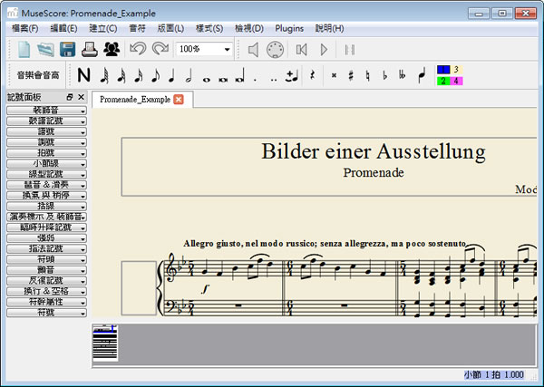 首頁教育學習音樂 MuseScore 作曲與樂譜免費軟體(繁體中文版) 偶有靈感或天生音樂創作家,想要創作自己的音樂時,不必用手來寫五線譜,可以來試試 MuseScore 這套繁體中文版的免費作曲與樂譜工具,除了可在 Windows、Linux、 MacOS 等作業系統來執行,透過 MuseScore 的協助,讓你可以所見及所得的譜出你的五線譜,更可以輸出包含 PDF、PNG 及 MIDI 等多種檔案格式,讓你輕輕鬆鬆就可以製作與列印出漂亮美觀的五線譜。 🔔 不錯過任何精彩! 立即訂閱我們的 LINE 官方帳號 每次發佈新文章時,您將會第一時間收到本站文章連結通知,輕鬆掌握最新資訊! 使用 LINE 追蹤文章更新 §相關文章,還可以參閱:abcjs 線上輸入 ABC音階創作樂曲,可轉五線譜並下載成 MIDI 或 WAV 檔Power tab Editor 幫你自動產生吉他六線譜Virtual Piano 在網頁上彈鋼琴♫MyDoodleSongs 替 Google Doodles 線上練習彈電吉他,附上數百個指法樂譜Google Doodles 線上練習彈電吉他,還能錄音及使用短網址分享 MuseScore 的特點如下: 標題、歌詞等等都可用中文 不限行數的五線譜 每行五線譜可用上四個聲部 可用滑鼠、鍵盤或MIDI鍵盤輸入音符, 又容易又快 包含有MIDI音序器(sequencer)以及軟體的音樂合成器 (software synthesiser)FluidSynth 能轉入及送出MusicXML和標準MIDI檔案(SMF) 完全免費, 根據 GNU GPL 執照 如何使用 MuseScore ? 1.可參閱官方所製作的影片教學,均含中文字幕。 Part 1 Score Setup Part 2 The MuseScore screen Part 3 Note Entry Basics Part 4 Note Entry with a MIDI Keyboard and Playback Part 5 Lyrics, Copying & Dynamics Part 6 Adding instruments, articulation and bars Part 7 Repeats, 1st and 2nd time endings Part 8 Codas Part 9 Drum Parts Part 10-A Layout and Formatting 2.安裝完成後的介面。 3.點擊[檔案] > [儲存為]可存為如下格式。 儲存為 PDF 文件後。 MuseScore版本:4.0.2語言:繁體中文(多國語言)性質:免費適用:Windows | Mac OS X | Linux官方網站:https://musescore.org/zh-hant下載: Windows 64bit 安裝版 按我下載 其他版本