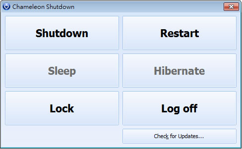 首頁電腦軟體系統應用 Chameleon Shutdown 電腦定時自動關機、重新開機、鎖定及登出排程工具 Chameleon Shutdown 是一套可排程的電腦自動關機、重新開機、休眠、鎖定及登出免費工具,使用上相當簡單,若不想使用 Windows 內建的工作排程器來設定(善用Windows 7內建的工作排程器,設定電腦定時自動關機、休眠或自動重開機!),可以試試 Chameleon Shutdown。 🔔 不錯過任何精彩! 立即訂閱我們的 LINE 官方帳號 每次發佈新文章時,您將會第一時間收到本站文章連結通知,輕鬆掌握最新資訊! 使用 LINE 追蹤文章更新 §相關文章,還可以參閱:CatLock:可鎖定鍵盤的 Windows 應用程式,防止寵物意外觸碰Zen Ad blocker 瀏覽器與應用程式均適用的廣告攔截器,免費且開放原始碼TimVer 一站式顯示 Windows 版本及電腦硬體相關訊息的工具「微軟電腦管家」內含開機啟動項目管理、儲存空間最佳化等免費工具 全方位提升電腦效能Windows Startup Timer 測量 Windows 從開機到完全啟動所需時間 如何使用Chameleon Shutdown? 1.下載、安裝並開啟 Chameleon Shutdown 主程式,Sleep 及 Hibernate 因 Windows 作業系統不同而有所差別。 2.滑鼠移至所要的功能後,便會出現兩個選項[Right Now](立即執行)及[With Parameters...](透過排程設定)。 3.點擊[Right Now]後,便會開始倒數計時預設 20 秒,時間到便執行。若要立即執行,可點擊[Run now],若要自行設定倒數時間,可點擊[Run in]。 4.點擊[With Parameters...],進入設定視窗後,可先點擊[More...]叫出多條件式設定(and 或 or)。 5.在 Force if hung 選擇其條件式。 6.在到達所設定的時間時,便會出現倒數計時,同第 3 點所述。 Chameleon Shutdown版本:1.2.2.40語言:英文性質:免費適用:Windows官方網站:http://www.chameleon-managers.com/下載: 按我前往官網下載 按我下載