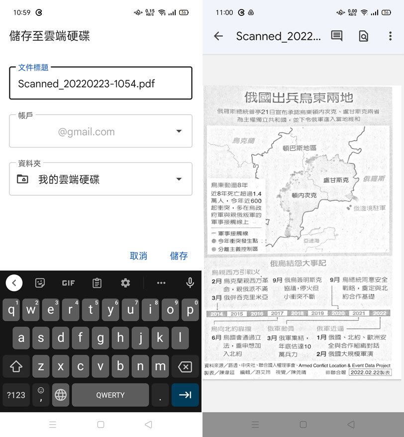 首頁移動設備生產力工具 如何使用 Android 內建鏡頭將文件掃描成 PDF 檔案? 以前要將實體的文件、圖片數位化,多數都是透過掃描設備進行操作,而如今我們只需要透過手機內建的相機便可以運作,要將實體的文件數位化,我們可以透過 Android 手機安裝 Google 「雲端硬碟」App 就可以對圖片、文件進行掃描,也可以對已掃描的檔案進行方向、裁剪等調整,最後轉出 PDF 文件,方便後續的應用與流通。 🔔 不錯過任何精彩! 立即訂閱我們的 LINE 官方帳號 每次發佈新文章時,您將會第一時間收到本站文章連結通知,輕鬆掌握最新資訊! 使用 LINE 追蹤文章更新 §相關文章,還可以參閱:Phone On Web 免任何安裝就可以在瀏覽器內使用滑鼠與鍵盤操作手機的各項功能「Edge」如何在手機內捲動瀏覽畫面做長截圖?1Timer 有語音報時的 App如何在 Android 上使用 Chrome 擷取完整的網頁截圖?如何在手機中將網頁列印成 PDF 檔? 如何使用 Android 內建鏡頭將文件掃描為 PDF? 1.請先確 Android 手機內有安裝 Google 「雲端硬碟」App,如果沒有,可以到 前往 Google Play 網站下載、安裝。開啟 Google 「雲端硬碟」App 後,就可以按[ + ]浮動按紐。 2.點擊[ 掃描 ],開啟手機鏡頭,對準要掃描的文件,按下方圓形拍照按鈕。 3.覺得可以,就可以按打勾按鈕,利用所提供的工具進行微調或是儲存。 4.按[ 完成 ]按紐,就完成一個 PDF 檔案。 ( 以上範例文章,取自聯合報)