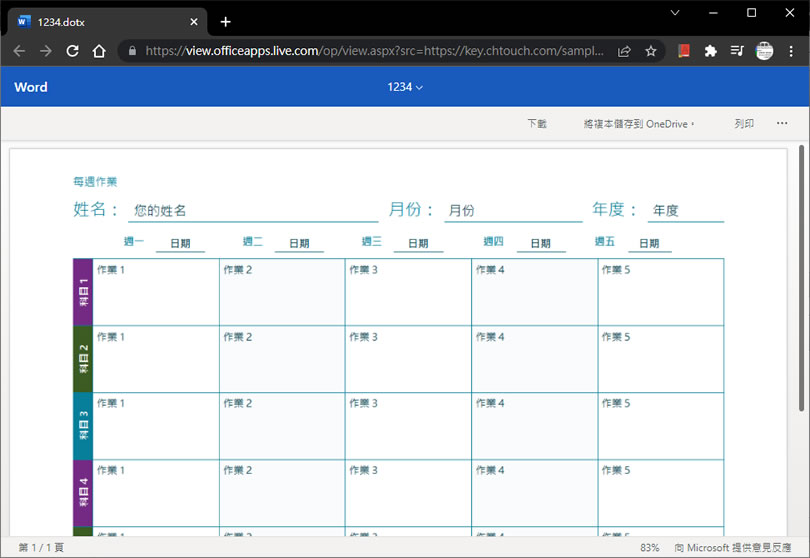 首頁操作技巧Word 如何直接開啟儲存在網路上的 Word、Excel 或 PDF 檔案? 要在沒有安裝微軟 Office 應用程式的情況下,開啟 Word 或 Excel 檔案的方法有很多,我們可以選擇將檔案上傳到 OneDrive 或是 Google Drive 開啟,或是在瀏覽器安裝文件、試算表及簡報的 Office 編輯擴充功能都是不錯的方法,如果這些都不想用,Google 或是 Microsoft 還有提供「網址+檔案 URL」的開啟方式讓我們使用,意即若要開啟已存在網路上的 Word 或 Excel 檔案,只要透過一段網址,就可以在瀏覽器內看到檔案內容,免去安裝應用程式或瀏覽器擴充功能,而網站若有意提供 Word、Excel 檔案線上開啟功能,使用這種方法不但簡單也免去額外買 API 的麻煩。 🔔 不錯過任何精彩! 立即訂閱我們的 LINE 官方帳號 每次發佈新文章時,您將會第一時間收到本站文章連結通知,輕鬆掌握最新資訊! 使用 LINE 追蹤文章更新 §相關文章,還可以參閱:「Word」如何讓「貼上」動作僅保留文字而不保留原有格式設定?[ Word ]如何快速擷取螢幕畫面?[ Word ]如何使用 RAND 函數,快速產生隨機中、英文字盲文?[ Word ]如何製作具有開啟密碼保全的 PDF 檔案?[ Word ]如何將頁面上下或左右平均分成兩半? 如何使用瀏覽器開啟 Word、Excel 檔案? 1.微軟提供的網址:https://view.officeapps.live.com/op/view.aspx?src= + 檔案網址,可開啟 Word 及 Excel 檔案,可試試以下網址。 Word:https://view.officeapps.live.com/op/view.aspx?src=https://chtouch.com/sample/4858/1234.dotx Excel:https://view.officeapps.live.com/op/view.aspx?src=https://chtouch.com/sample/4858/1234.xlsx 2.相同的檔案,使用 Google 所提供的 https://drive.google.com/viewer?url= + 檔案網址,可開啟 PDF、 Word 及 Excel 檔案,可試試以下網址。 Word:https://drive.google.com/viewer?url=https://chtouch.com/sample/4858/1234.dotx Excel:https://drive.google.com/viewer?url=https://chtouch.com/sample/4858/1234.xlsx PDF:https://drive.google.com/viewer?url=https://chtouch.com/sample/4858/1234.pdf ※使用上述方式開啟 Excel、Word 或 PDF 檔案,非常適合有提供檔案下載的網站,可以將之設計成預覽與下載的兩種模式,方便使用者,另外,也適合電腦不想安裝開啟 Office 應用程式或是先下載再上傳到雲端硬碟開啟的使用者。